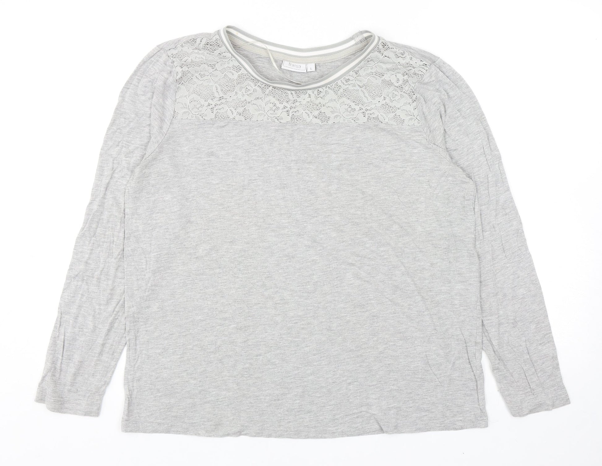 Fransa Womens Grey Polyester Basic T-Shirt Size L Roll Neck - Lace Detail