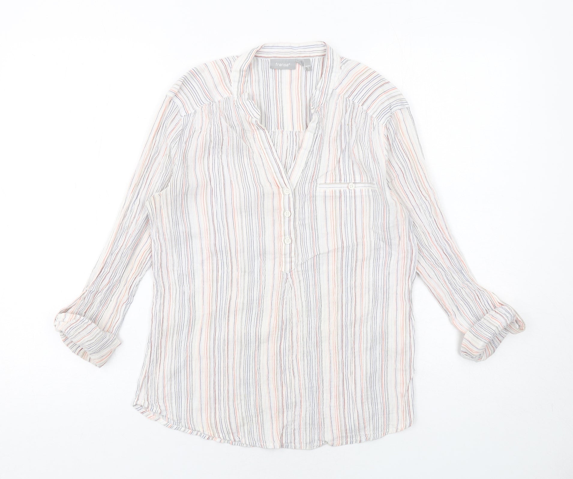 fransa Womens Multicoloured Striped Cotton Basic Blouse Size XS V-Neck