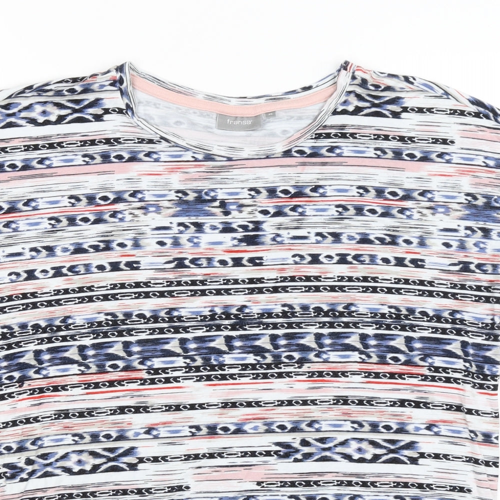 Fransa Womens White Striped Basic T-Shirt Size XS