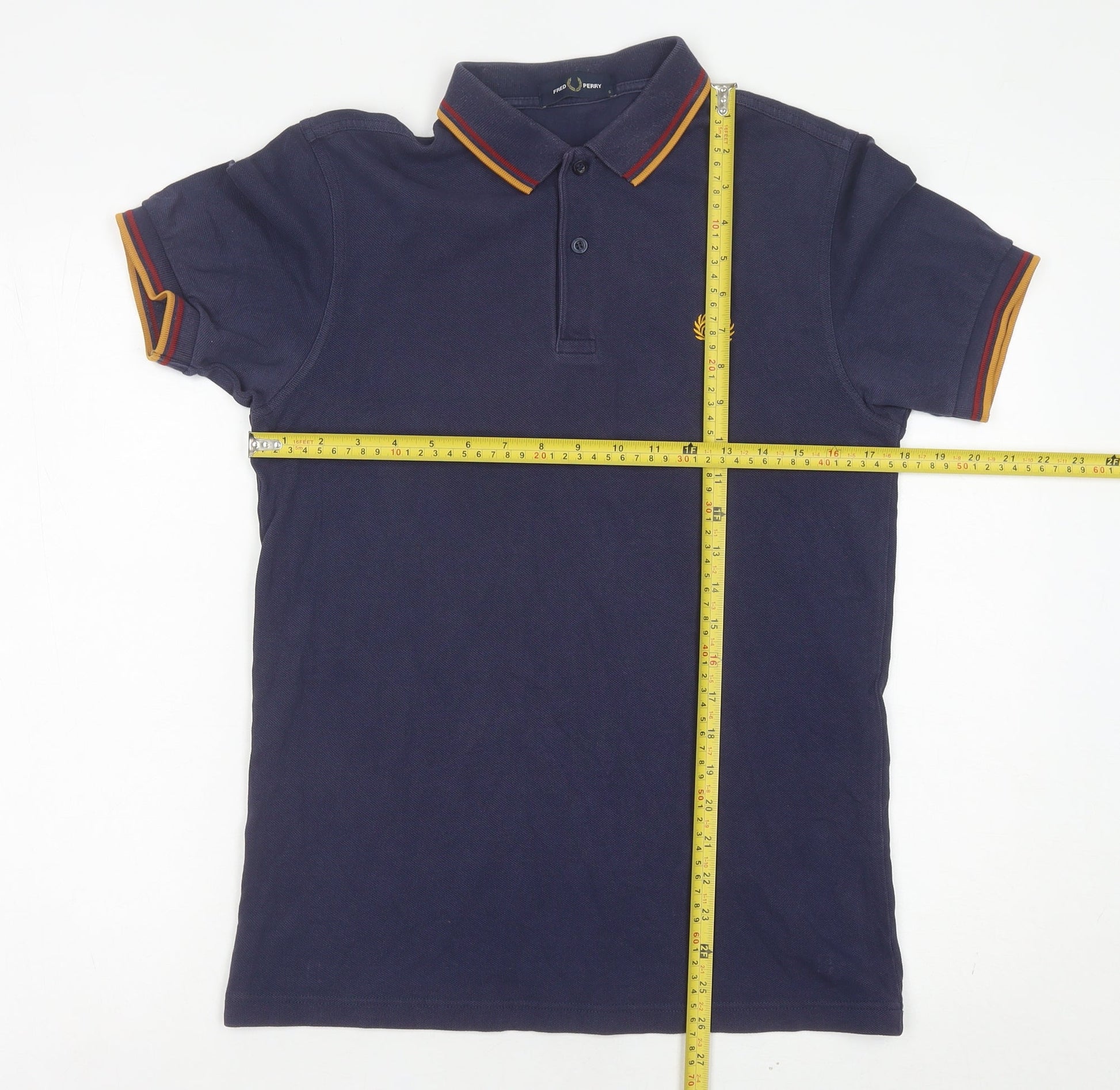 Fred Perry Mens Blue Slim Fit Polo Shirt S Short Sleeve Cotton