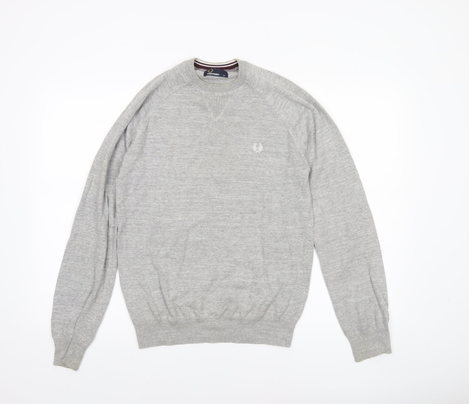 Fred Perry Men's Grey Wool Crew Neck Pullover Jumper XS