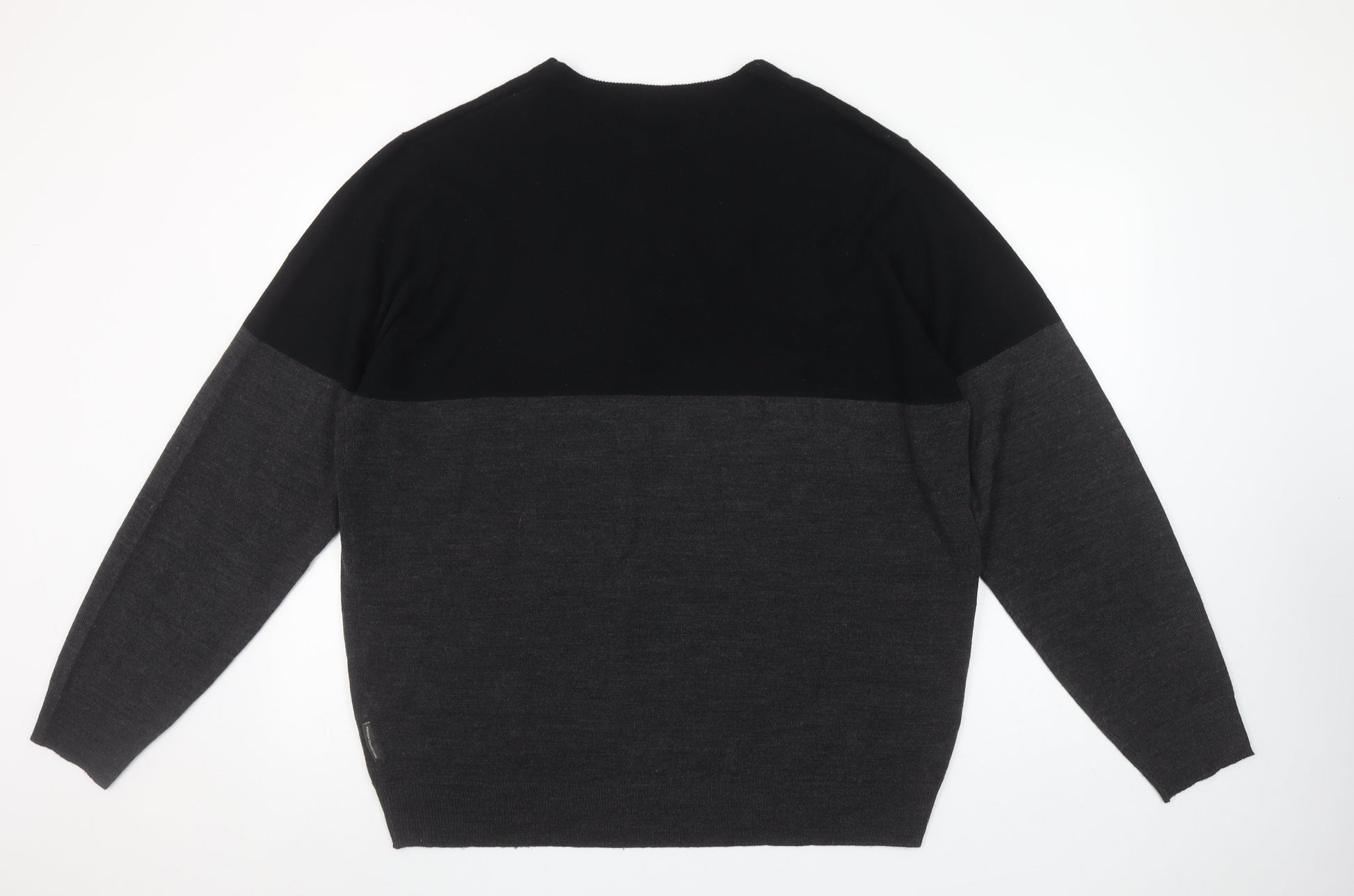 French Connection Men’s Black Grey 2XL Wool Blend Crew Neck Jumper