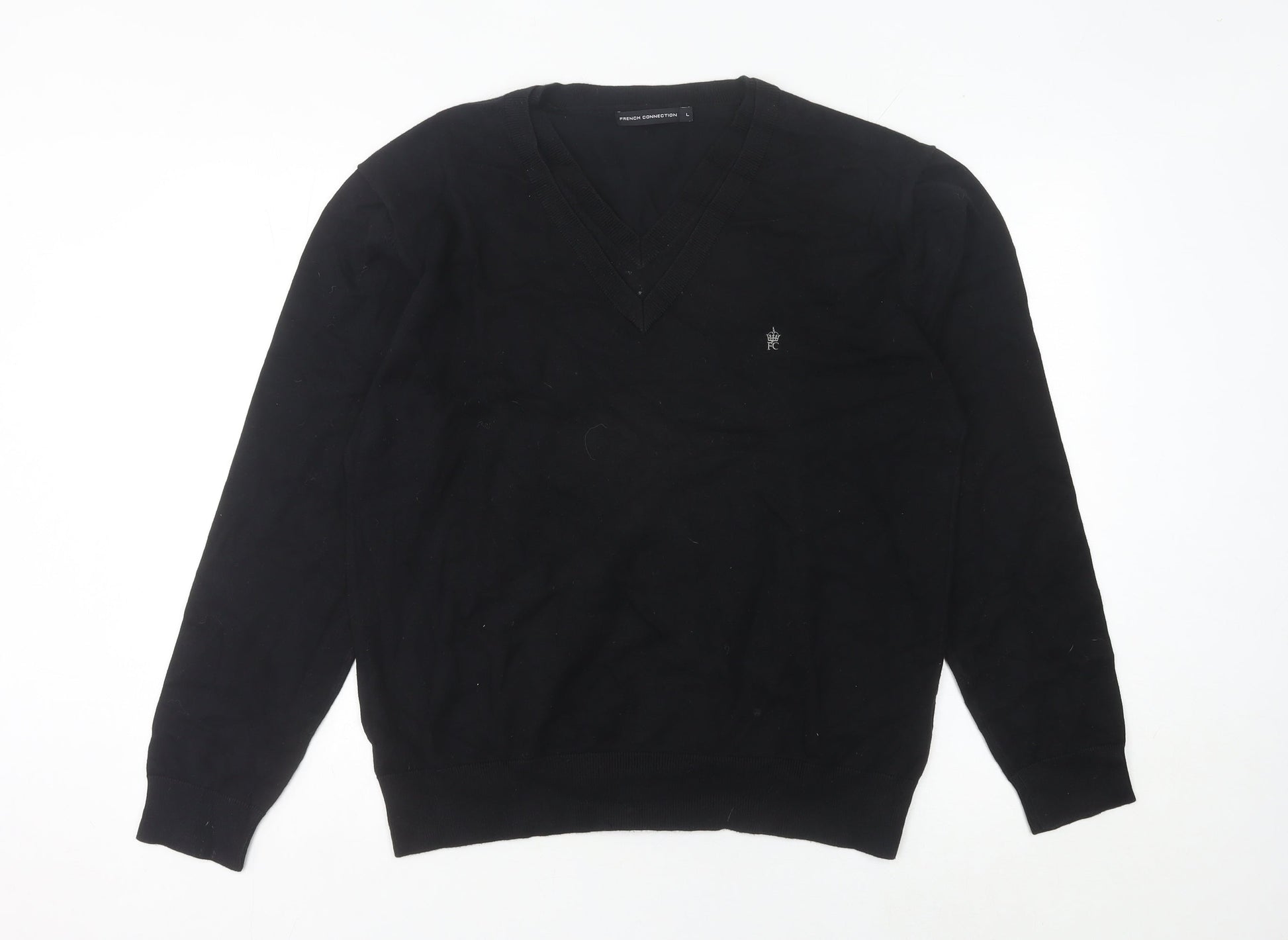 French Connection Men’s Black L V-Neck Cotton Blend Jumper