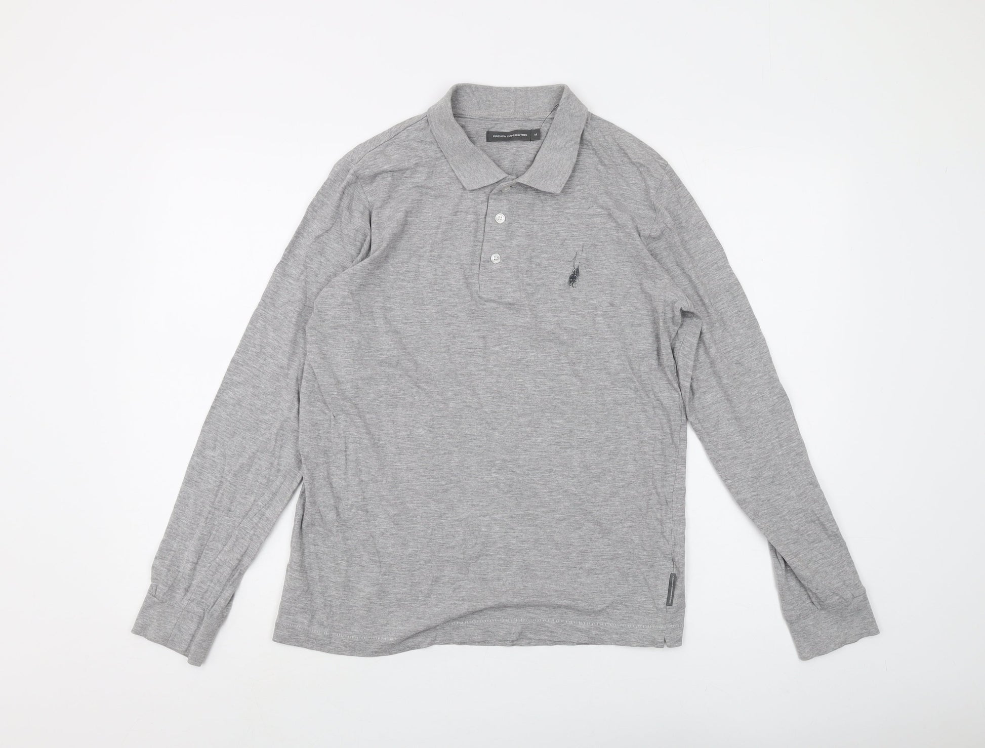 French Connection Men's Grey Long Sleeve Polo M