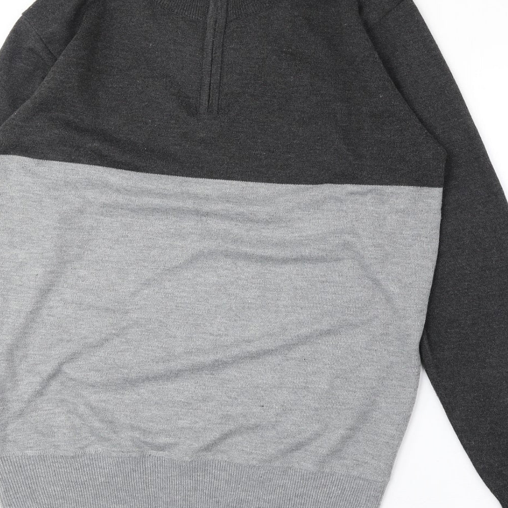French Connection Mens Grey Mock Neck Polyester Pullover Jumper Size L Long Sleeve - Quater-Zip