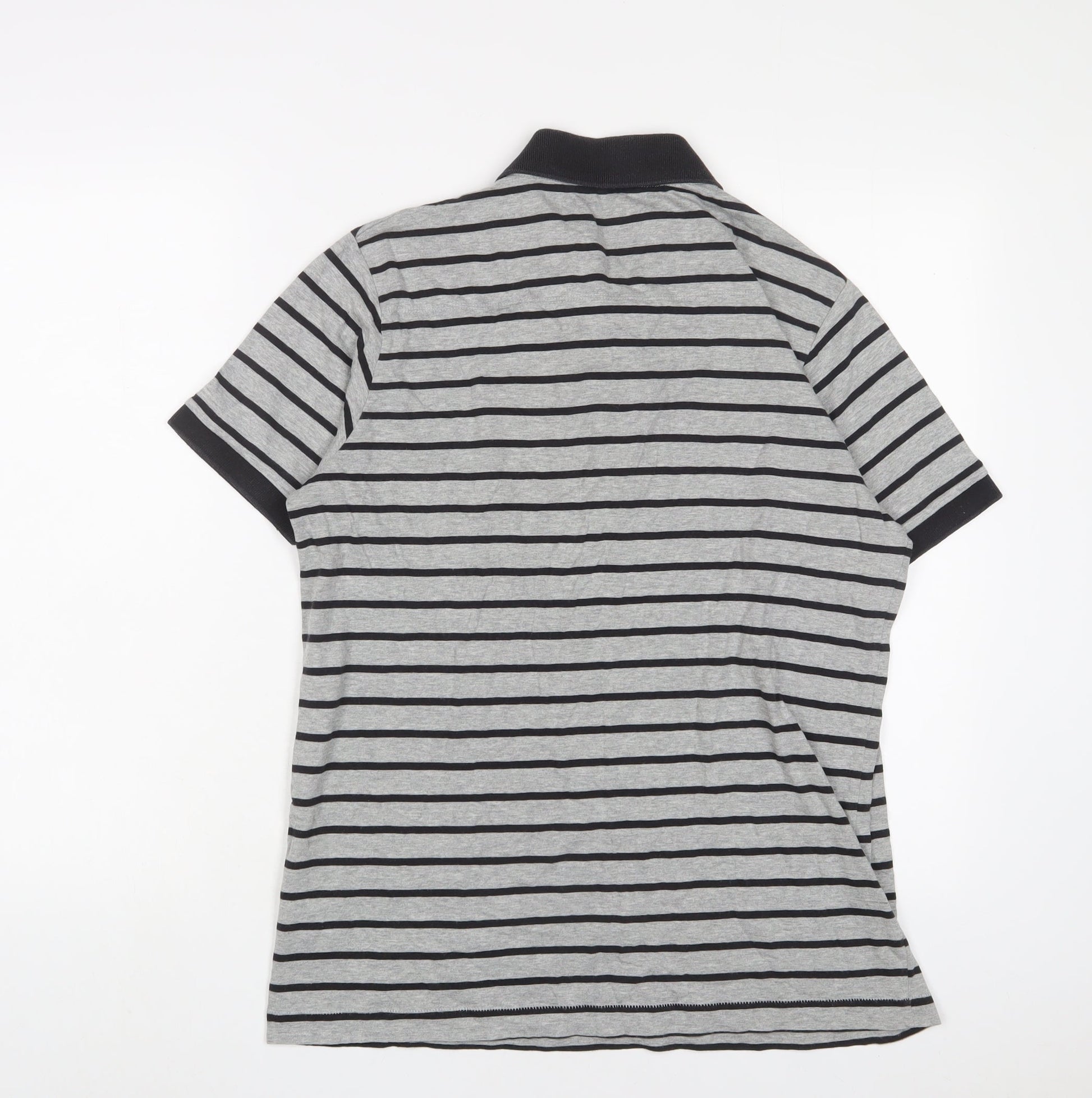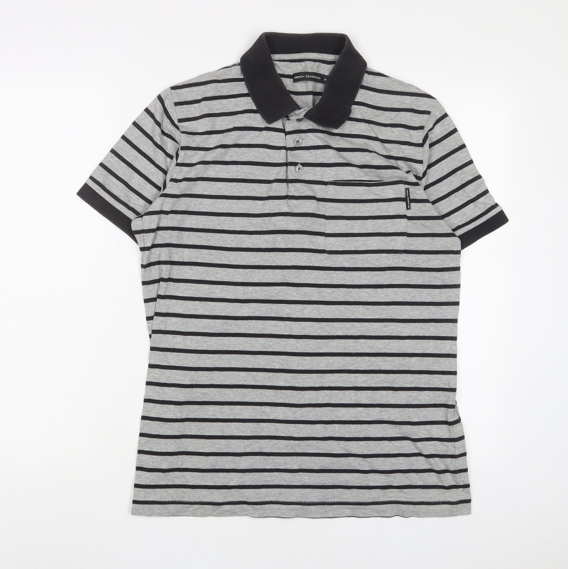 French Connection Mens Grey Striped Cotton Polo Size M Collared Button