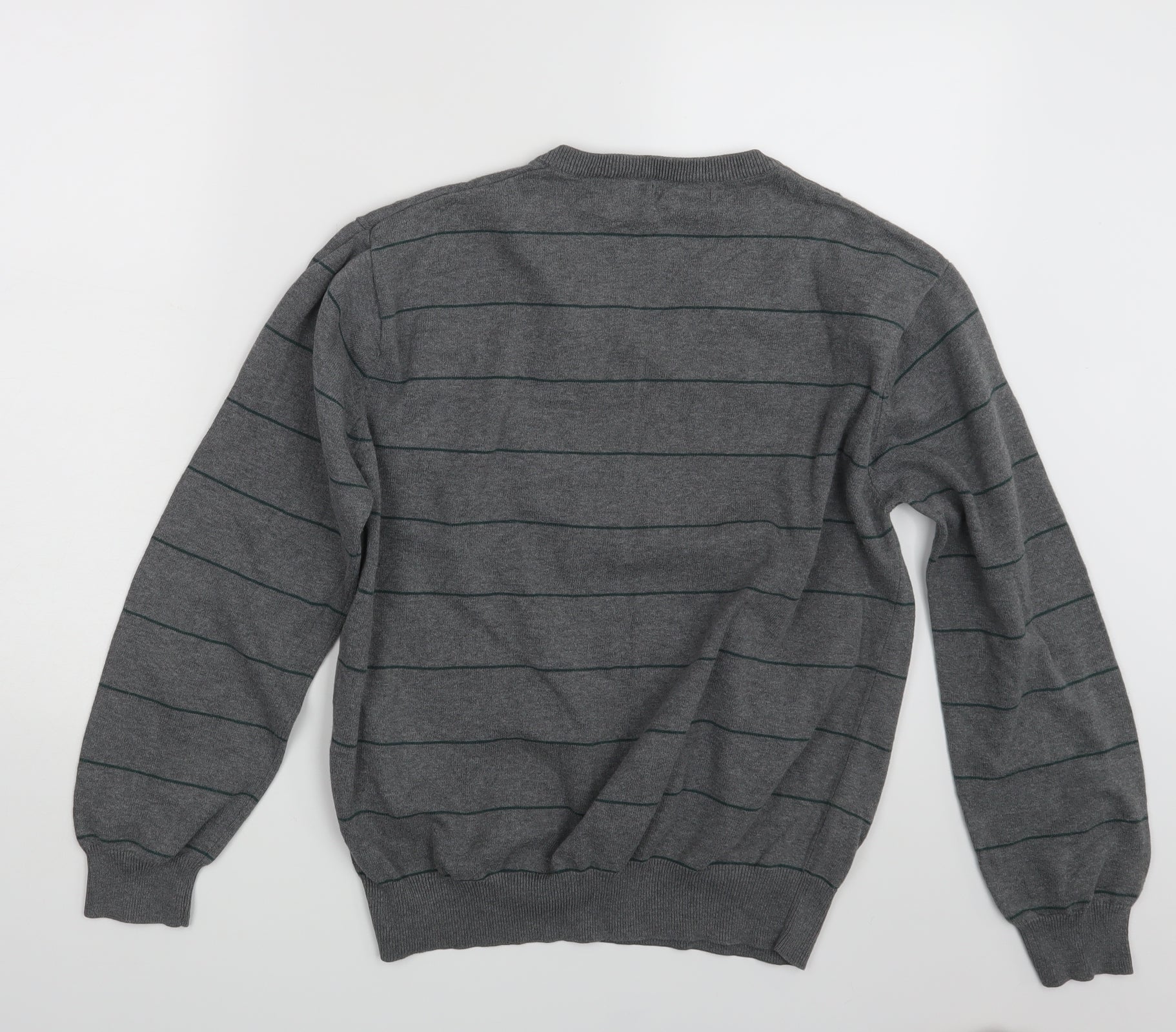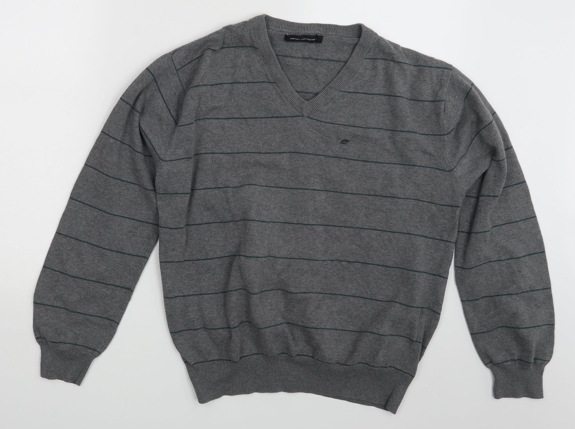 French Connection Mens Grey Striped Pullover Jumper Size L