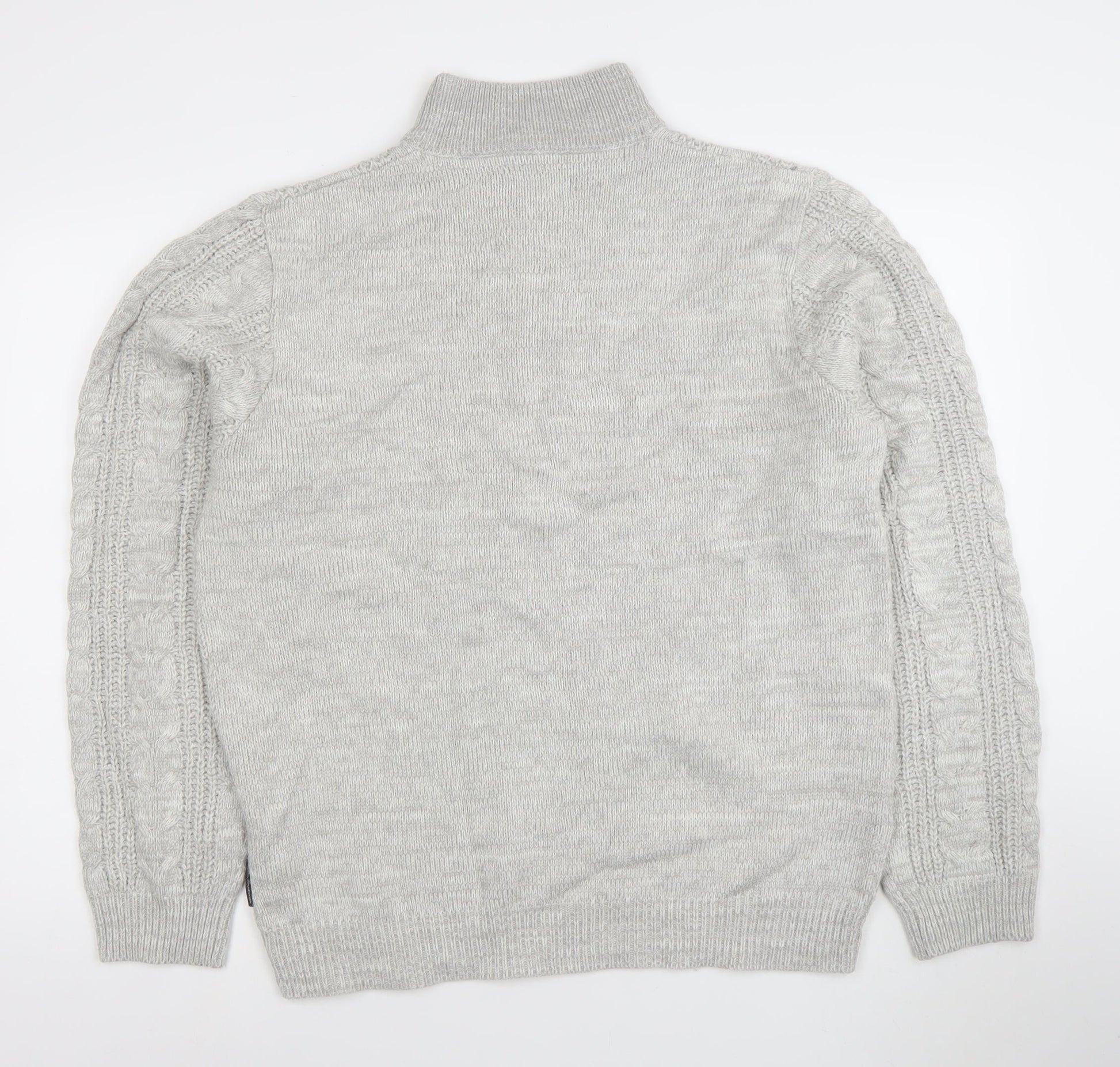 French Connection Men's Grey XL Cable-Knit 1/4 Zip Jumper