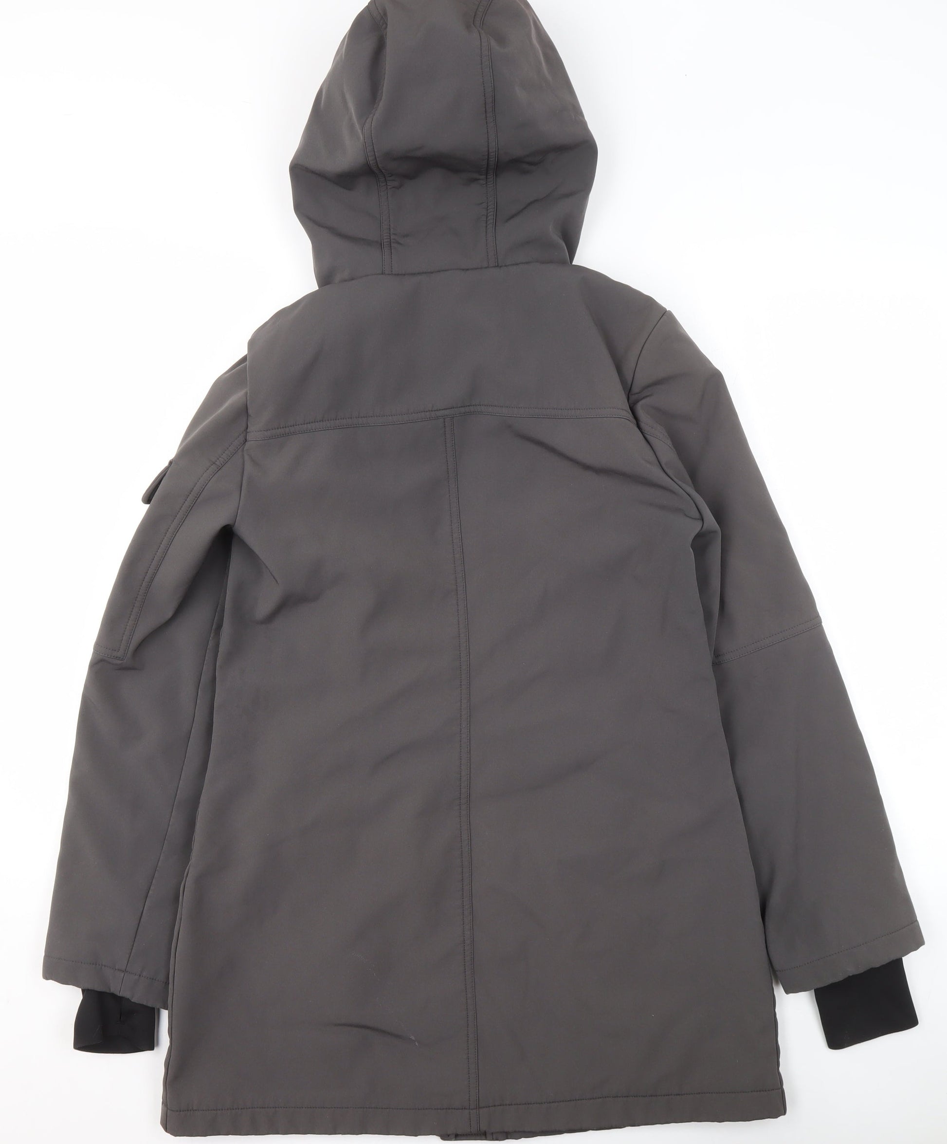 French Connection Women Grey Hooded Parka Coat S Long Waterproof