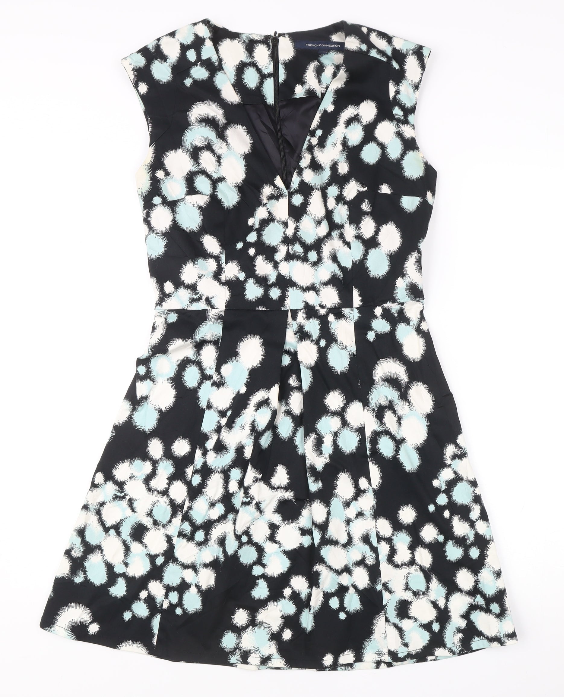 French Connection Women’s Black Animal Print Fit & Flare Dress UK 12