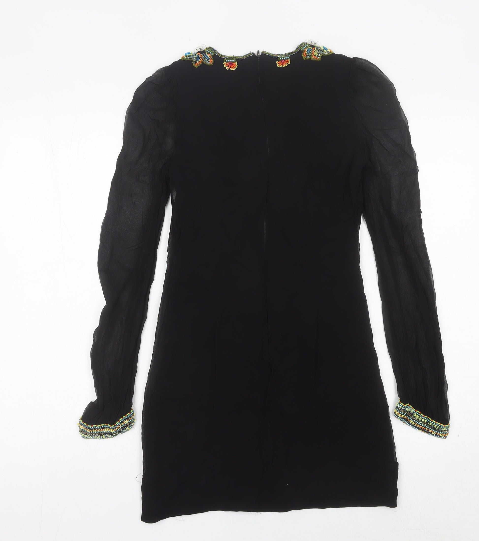 French Connection Women’s Black Silk Beaded Sheath Dress Size 6