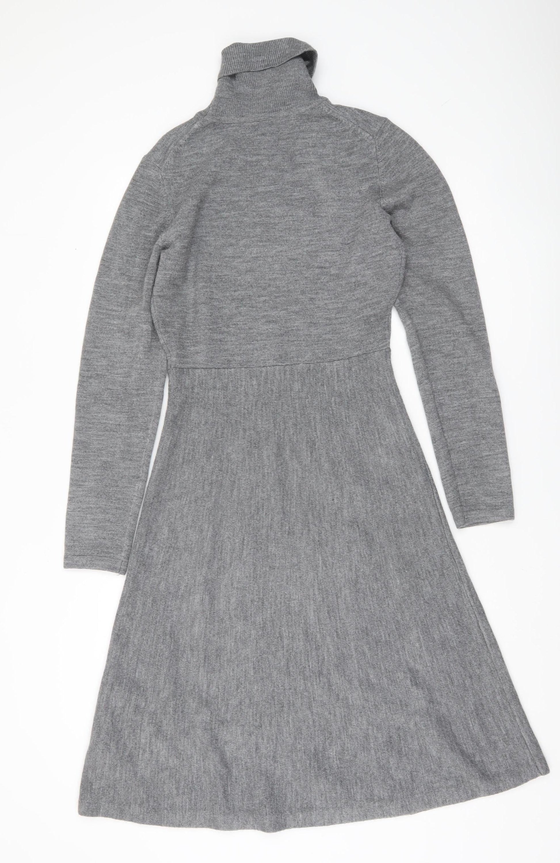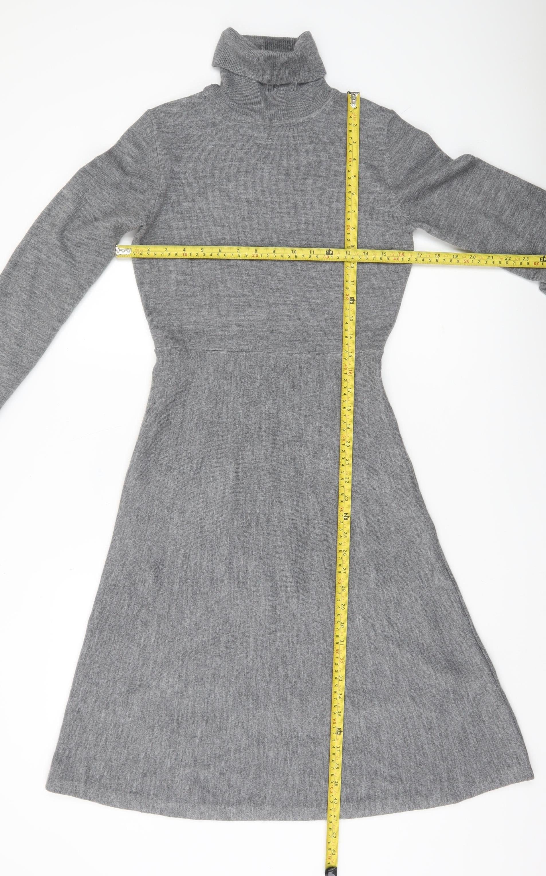 French Connection Women’s Grey A-Line Knit Dress Size S Roll Neck
