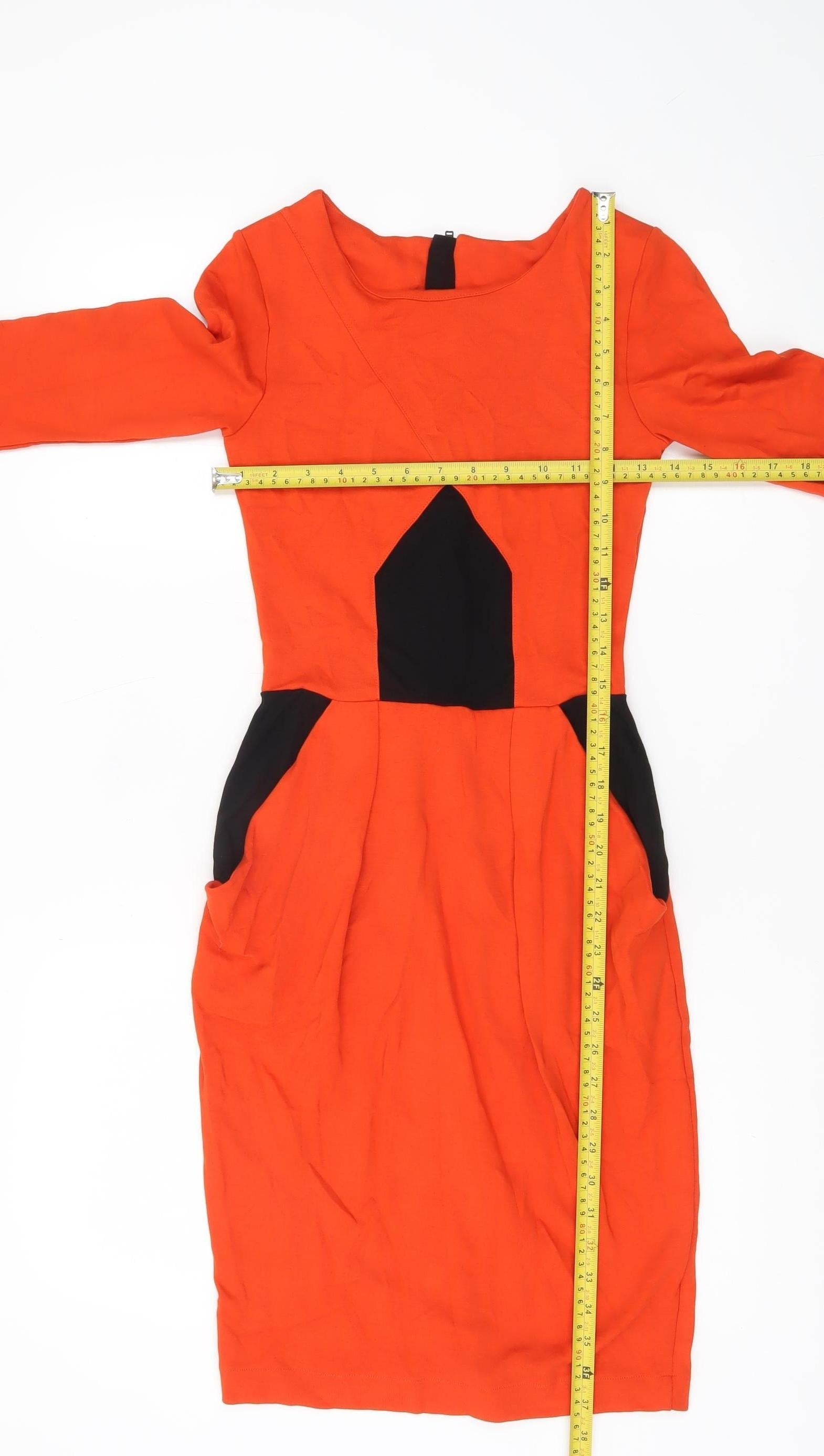 French Connection Women’s Orange Black Sheath Dress UK 6
