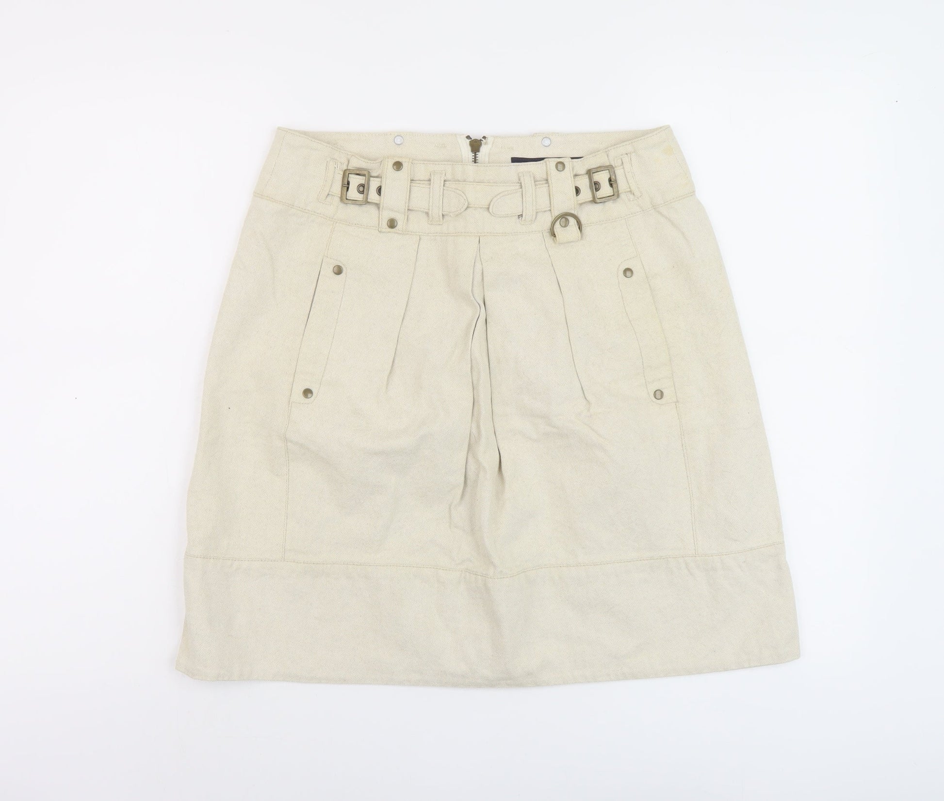 French Connection Womens Beige Cotton A-Line Skirt Size 10 Zip