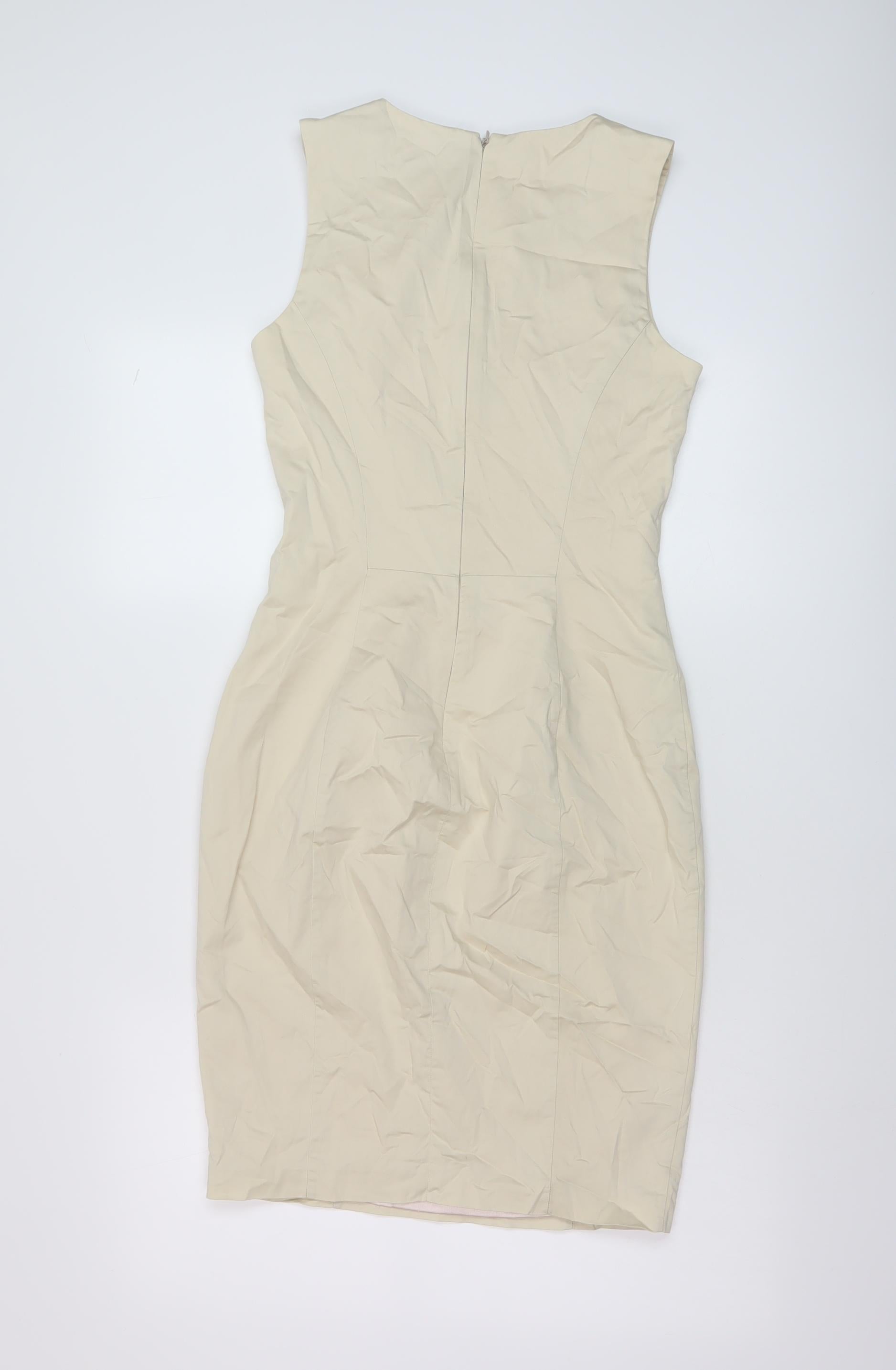 French Connection Womens Beige Cotton Bodycon Size 10 Round Neck Zip