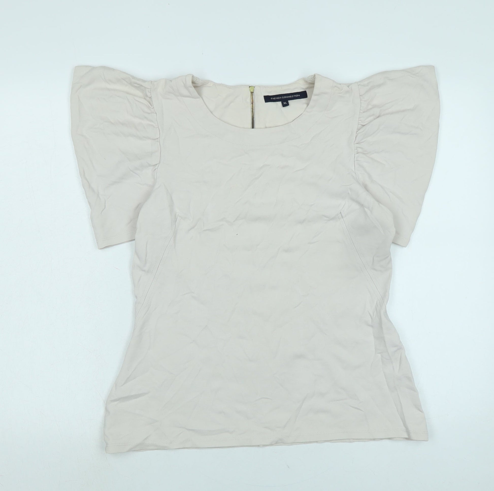 French Connection Womens Beige Cotton Jersey Blouse Size XL Crew Neck - Logo