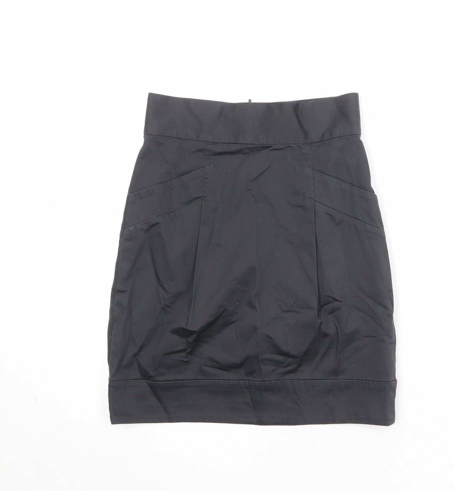 French Connection Womens Black Cotton A-Line Skirt Size 6 Zip