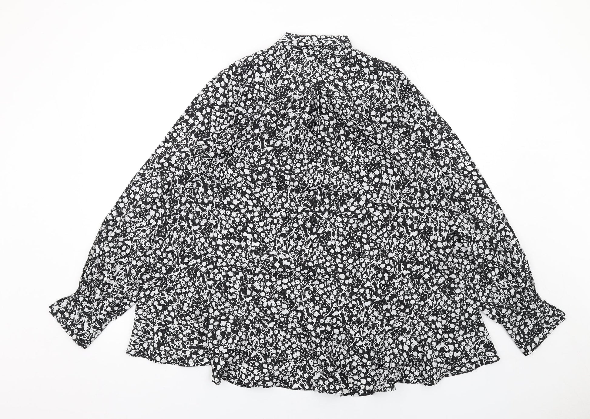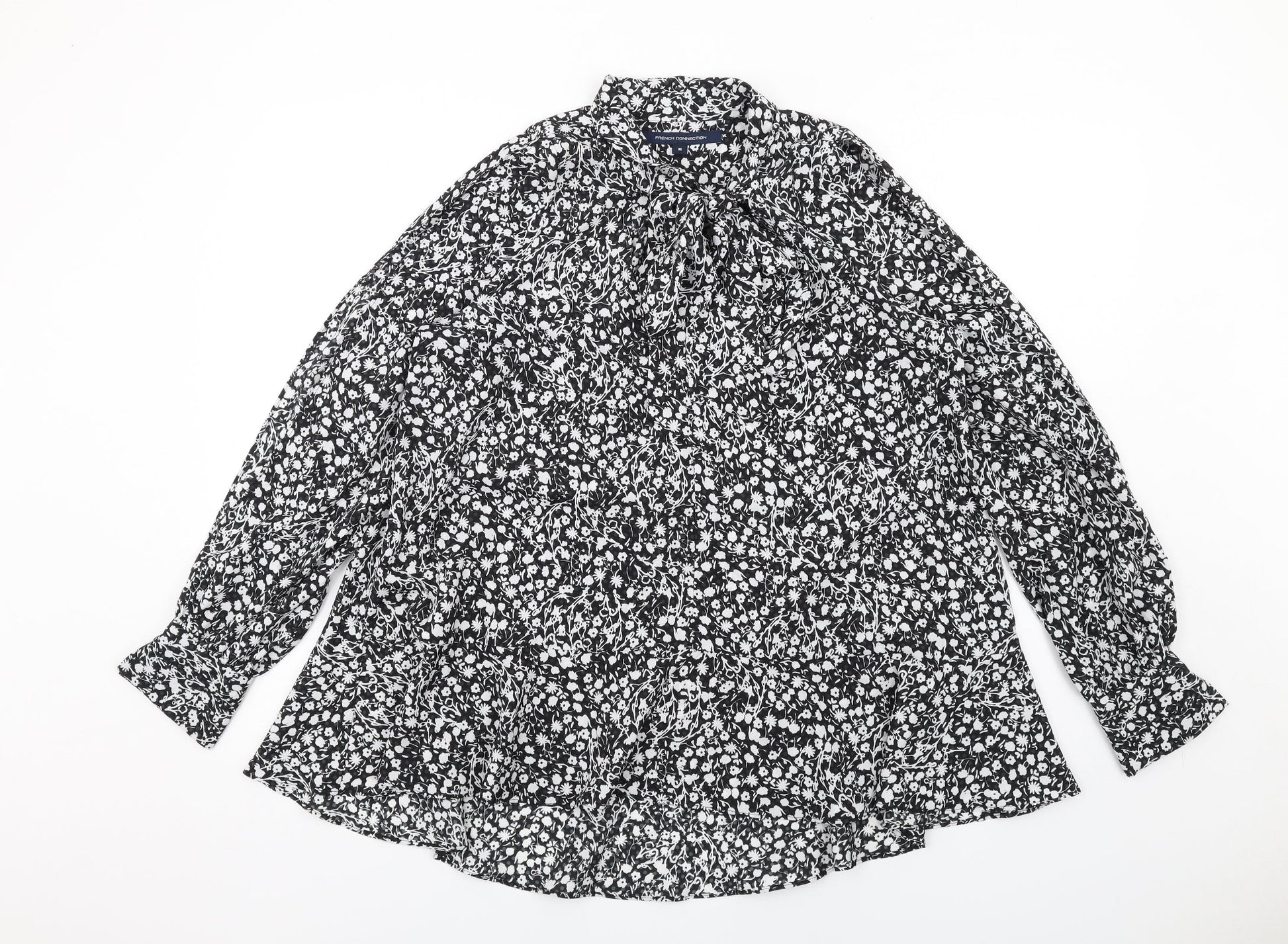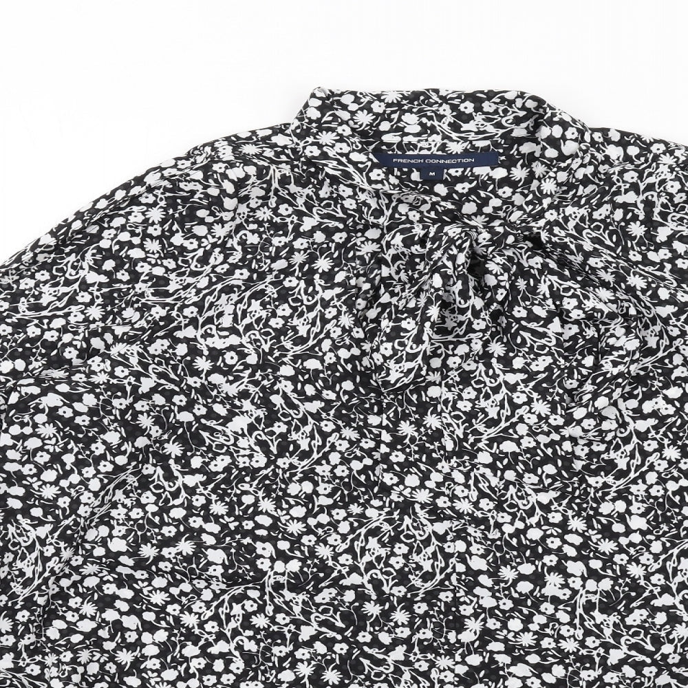 French Connection Womens Black Floral Polyester Basic Blouse Size M Collared