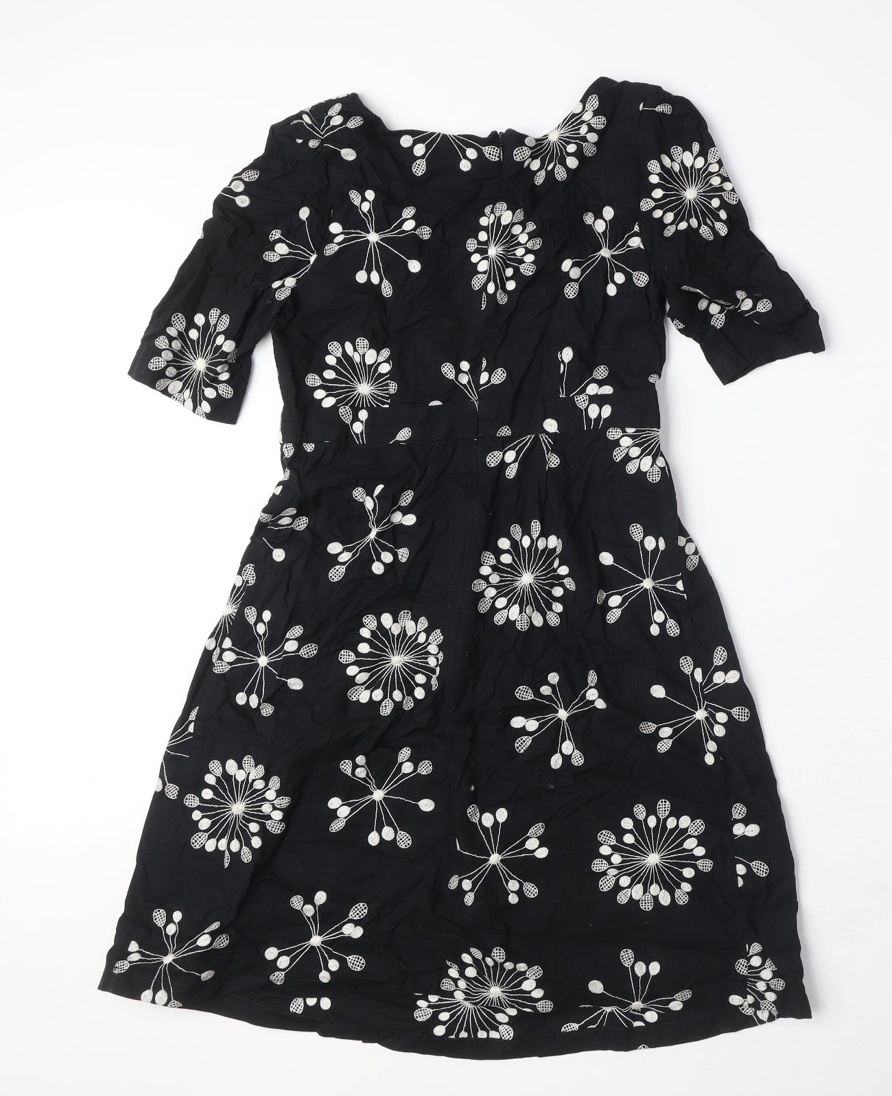 French Connection Womens Black Geometric 100% Cotton A-Line Size 8 Scoop Neck Zip