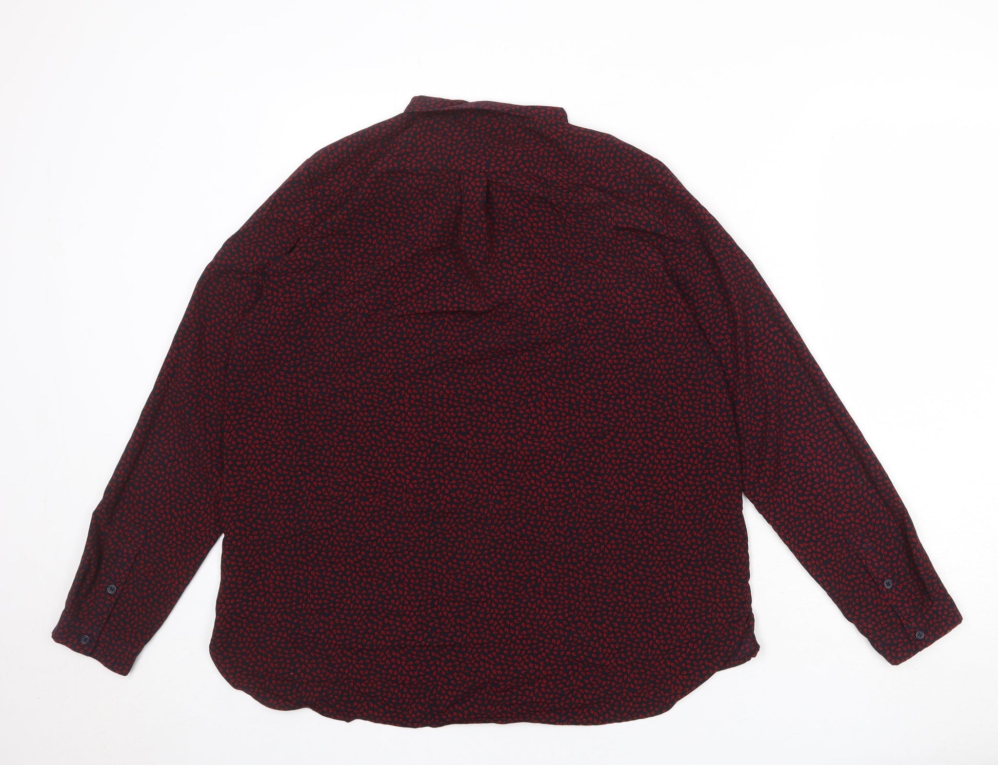 French Connection Womens Black Geometric Polyester Basic Button-Up Size 14 Collared
