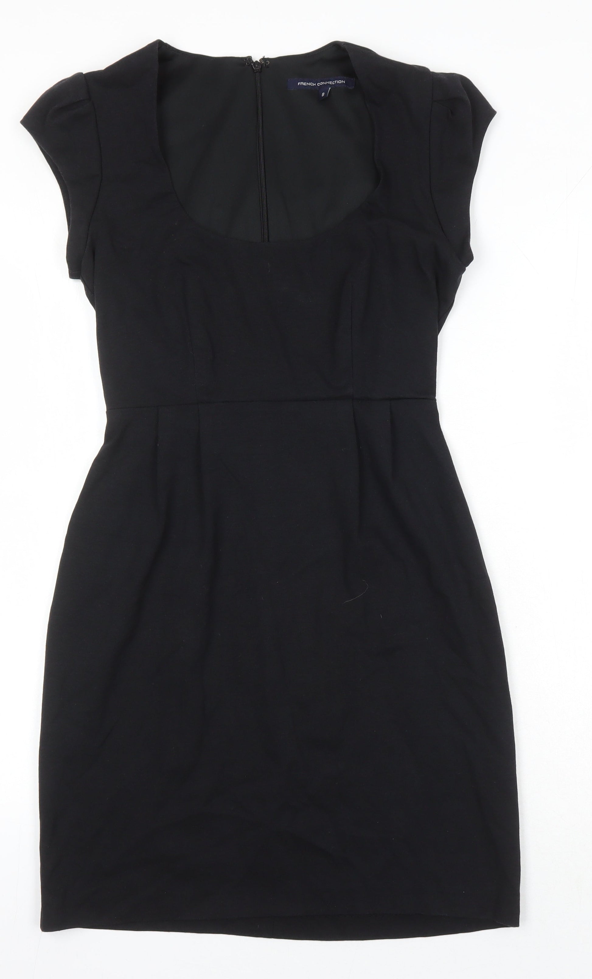 French Connection Womens Black Houndstooth Cotton Pencil Dress Size 8 Scoop Neck