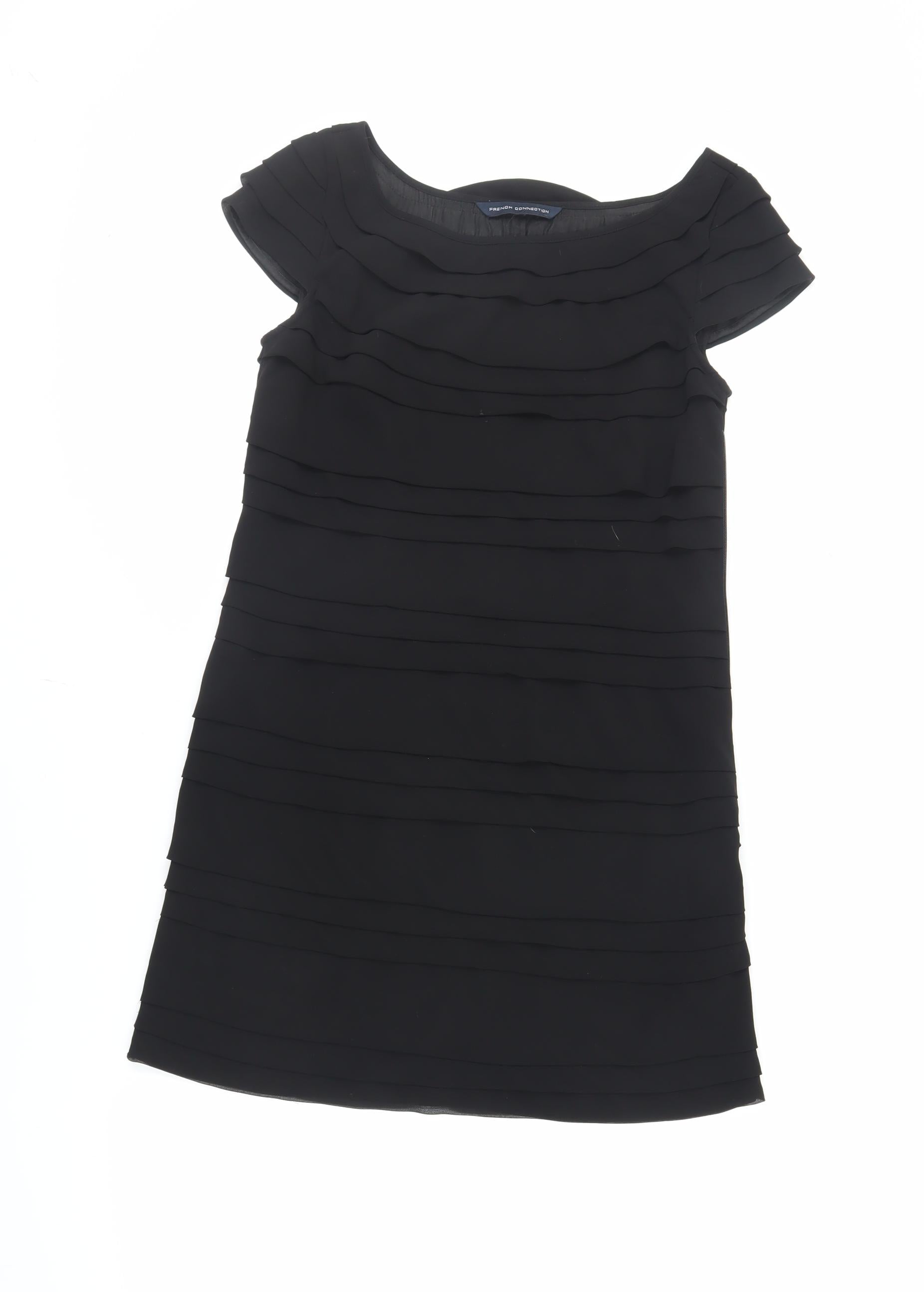 French Connection Womens Black Polyester Pencil Dress Size S Boat Neck Zip