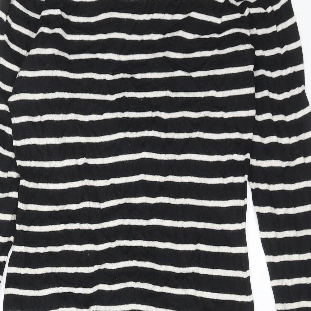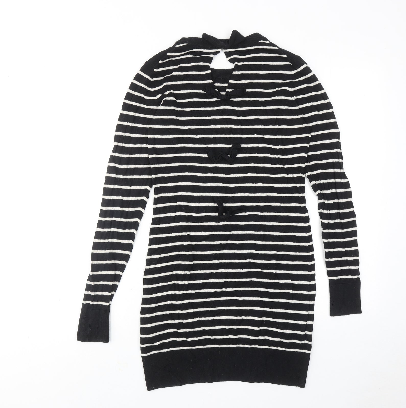 French Connection Womens Black Striped Cotton Jumper Dress Size 10 Round Neck Pullover
