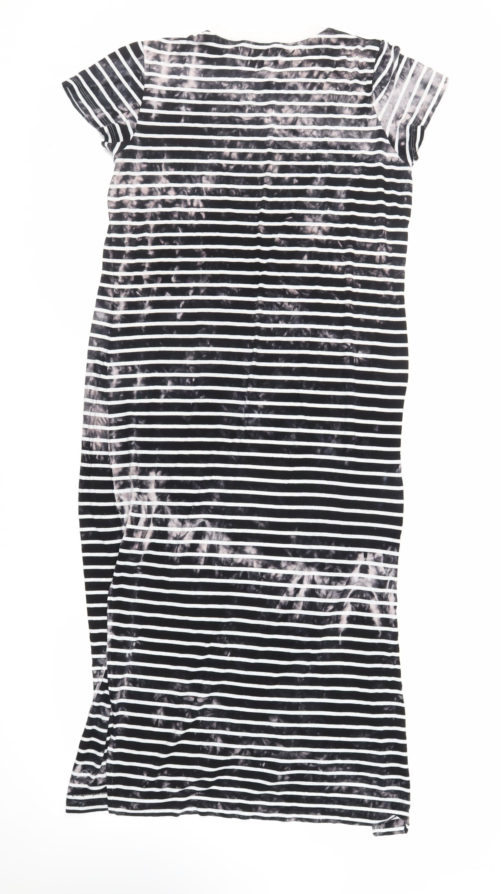 French Connection Womens Black Striped Viscose T-Shirt Dress Size 14 Crew Neck Pullover