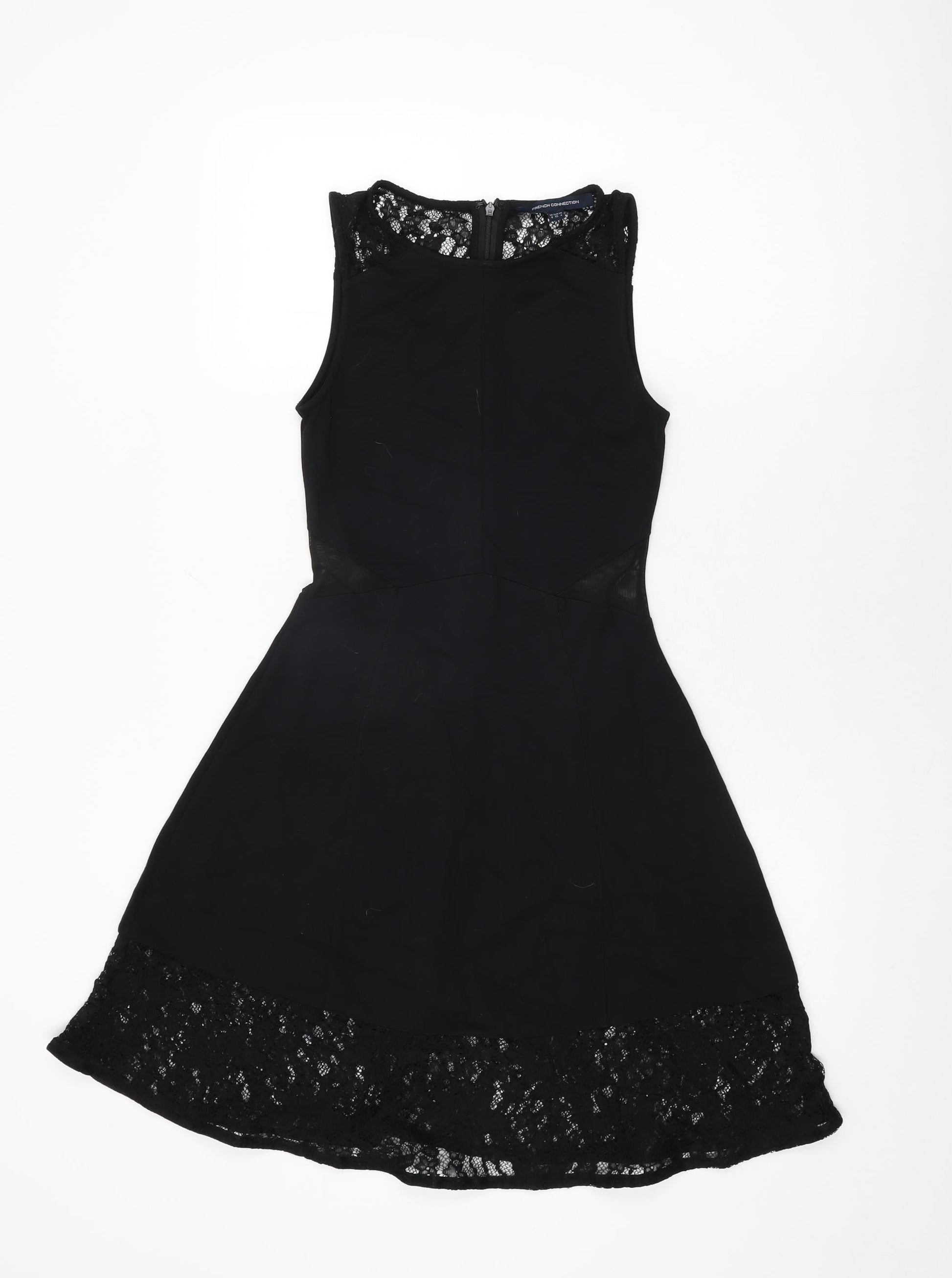 French Connection Womens Black Viscose A-Line Size 8 Round Neck Zip