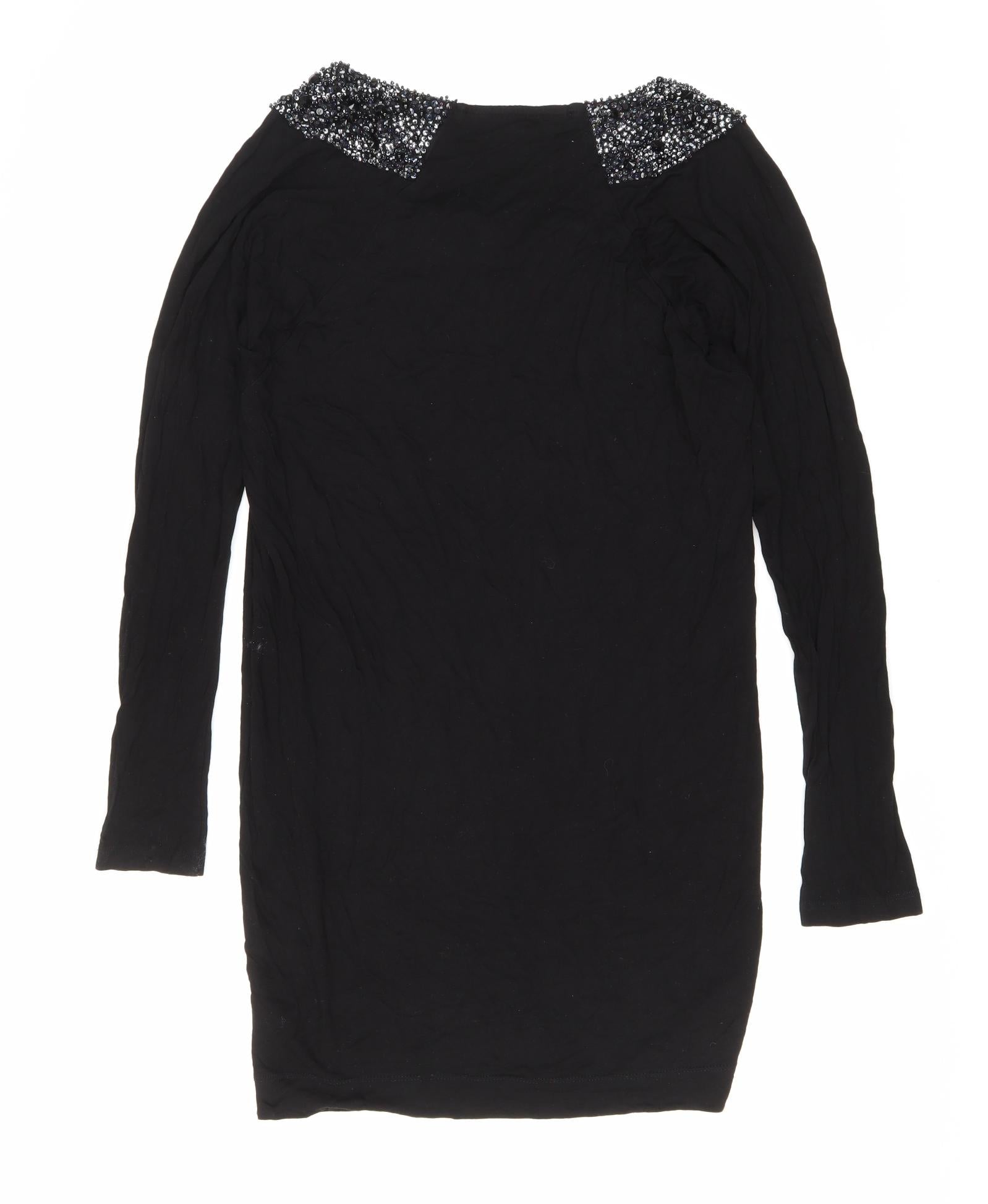 French Connection Womens Black Viscose T-Shirt Dress Size S Round Neck Pullover