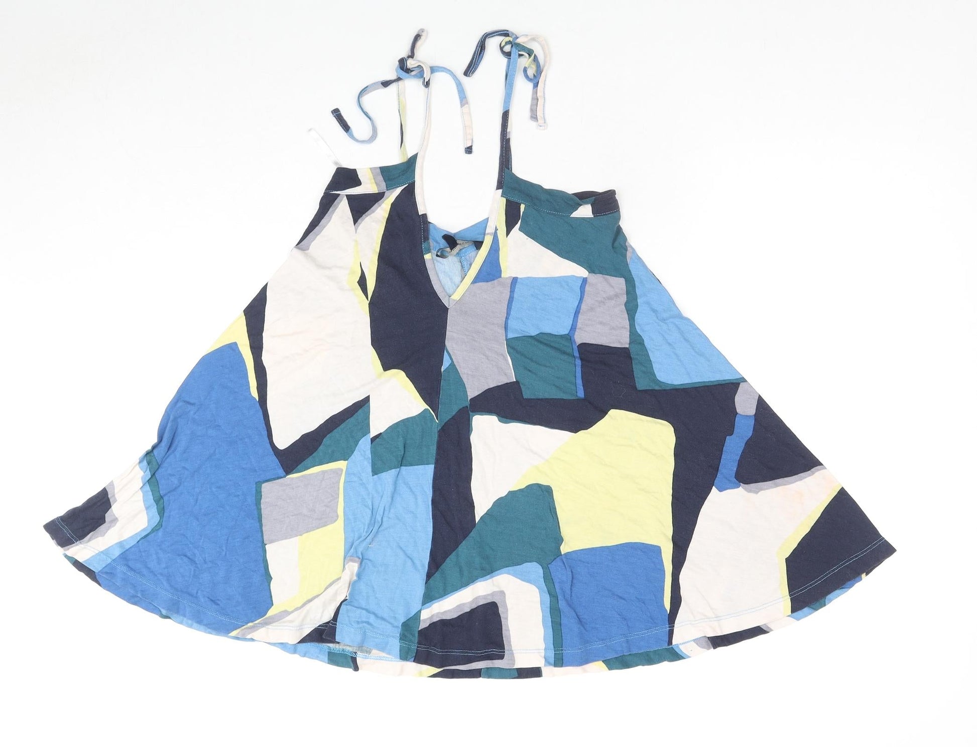 French Connection Womens Blue Colourblock Viscose Camisole Tank Size S V-Neck
