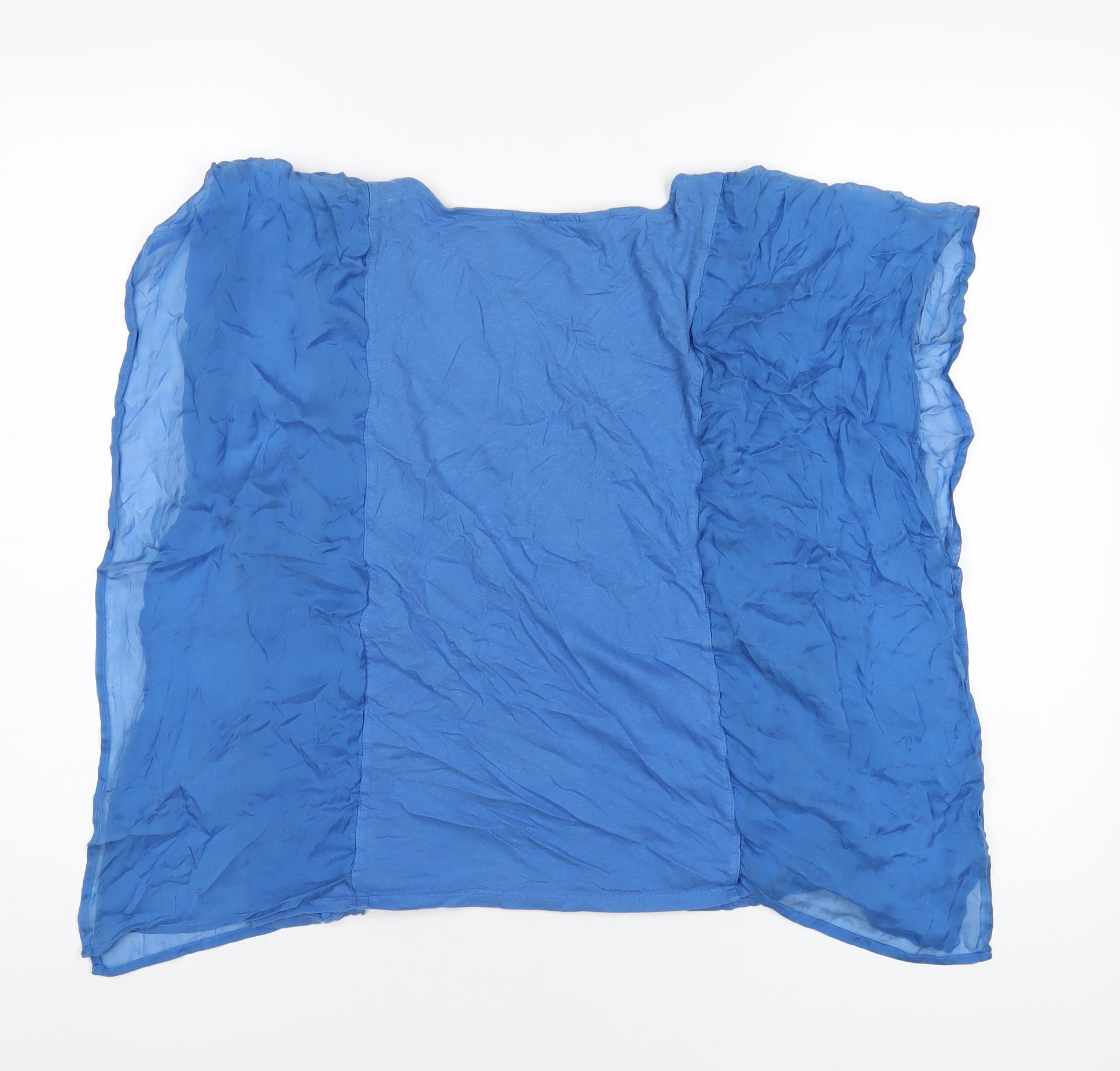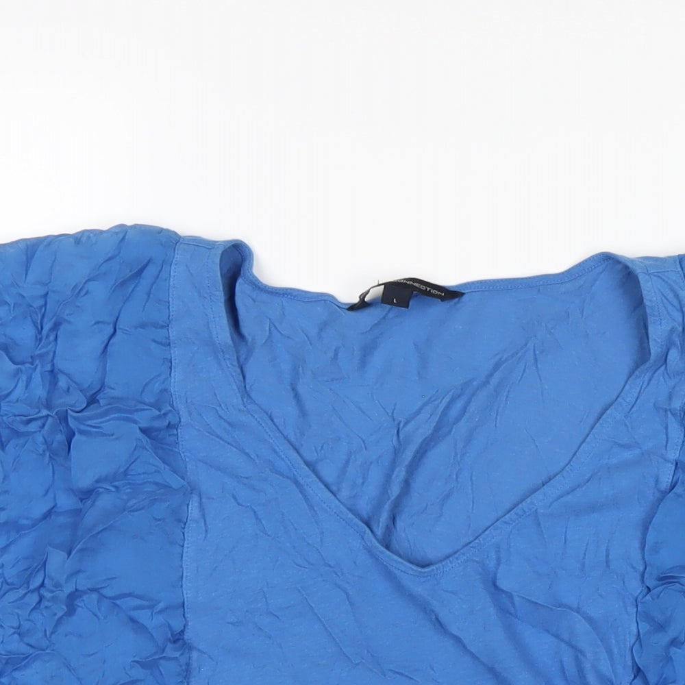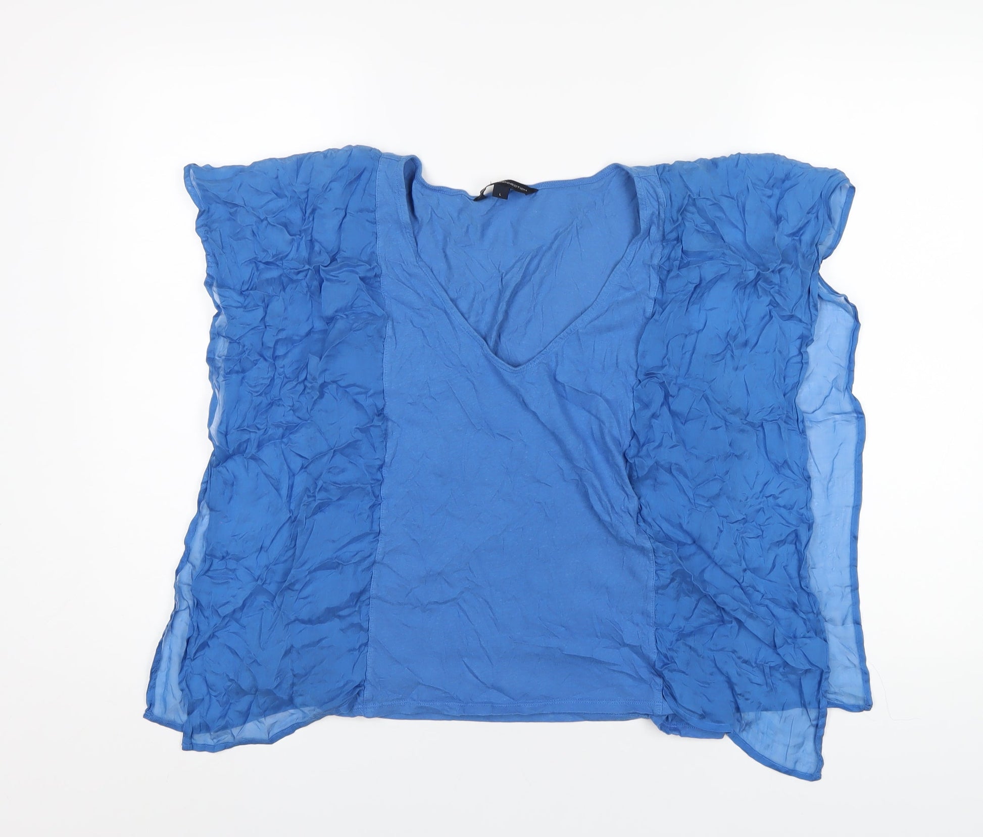 French Connection Womens Blue Cotton Basic T-Shirt Size L V-Neck