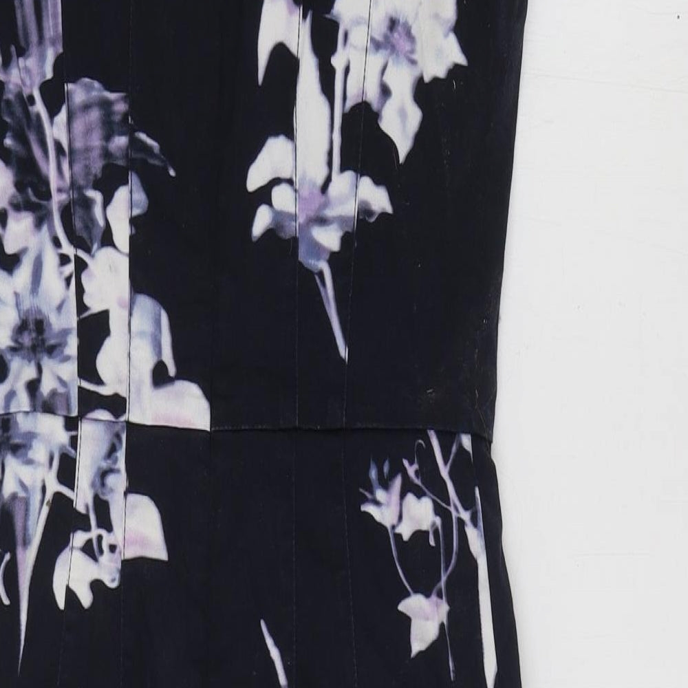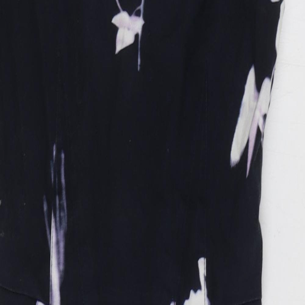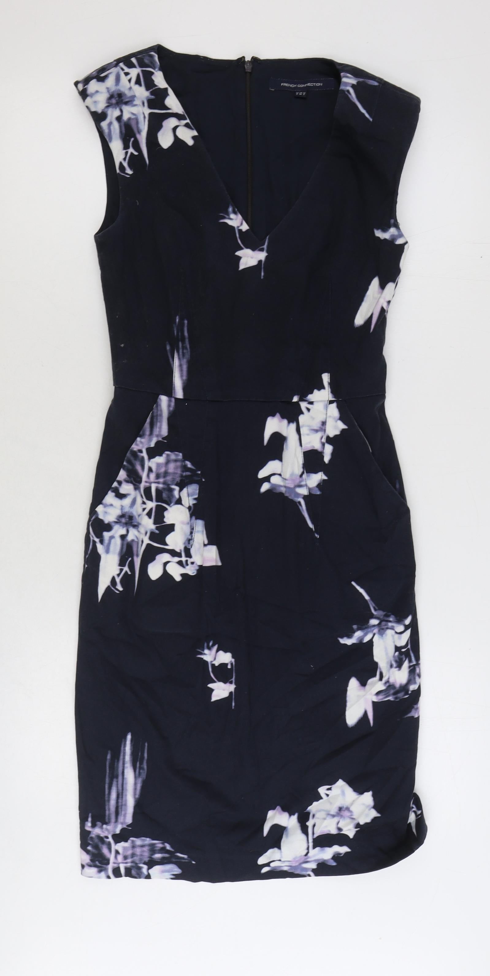 French Connection Womens Blue Floral Cotton A-Line Size 6 V-Neck Zip