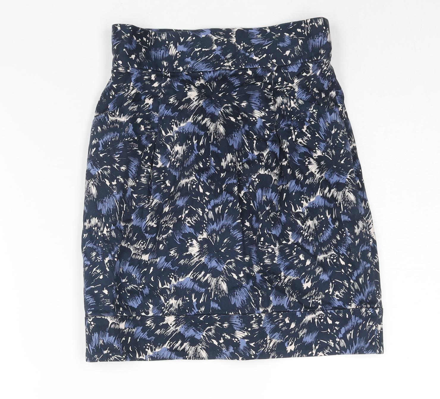French Connection Womens Blue Geometric Cotton Straight & Pencil Skirt Size 6 Zip - Pocket