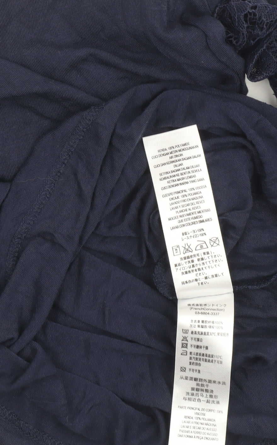French Connection Women's Blue Lace Shoulder Long Sleeve Jersey Blouse Size S