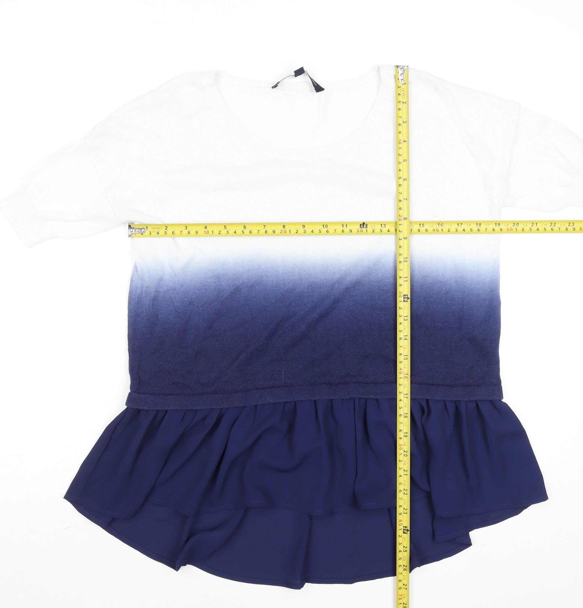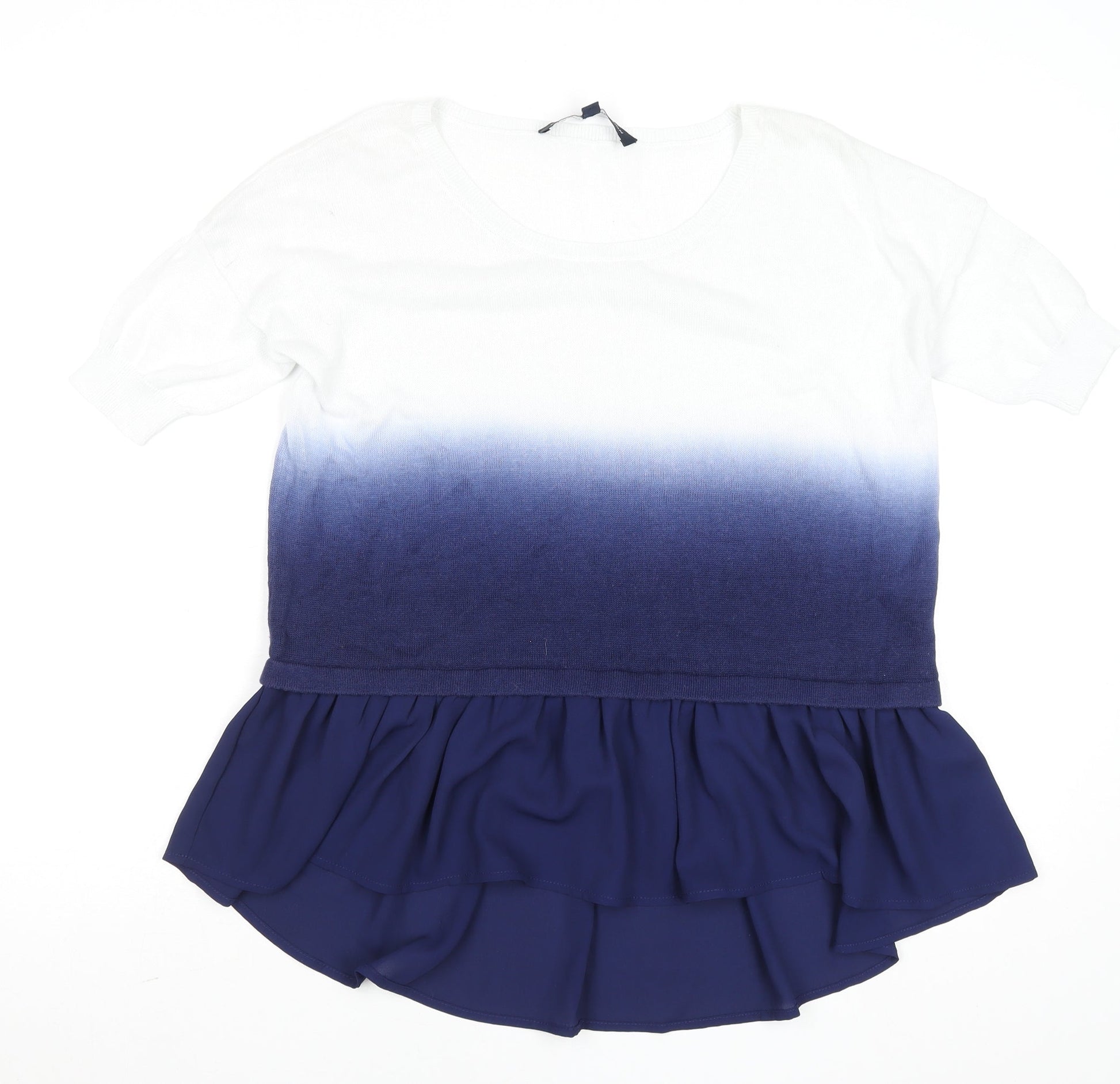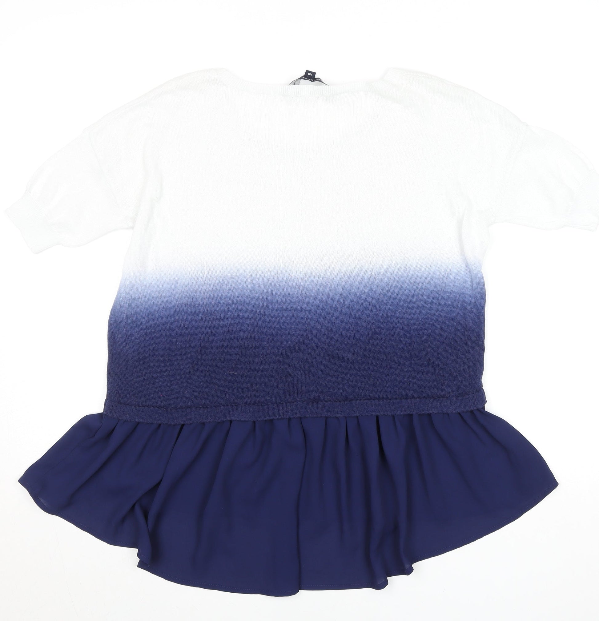French Connection Women's Blue Ombre Ruffle Tunic Blouse XS