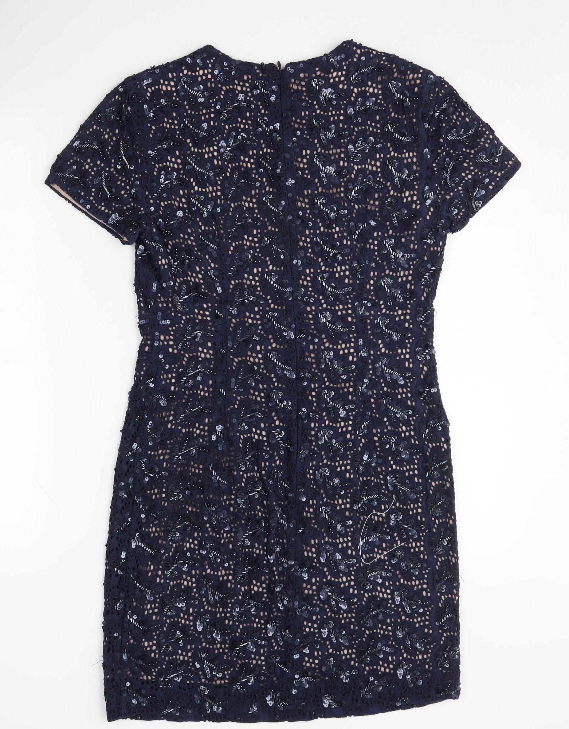 French Connection Women's Blue Sequin Sheath Dress Size 10