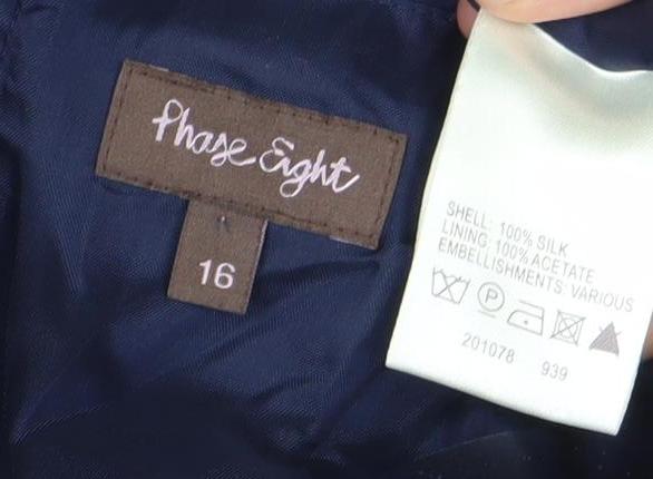 French Connection Womens Blue Silk Beaded A-Line Dress Size 16