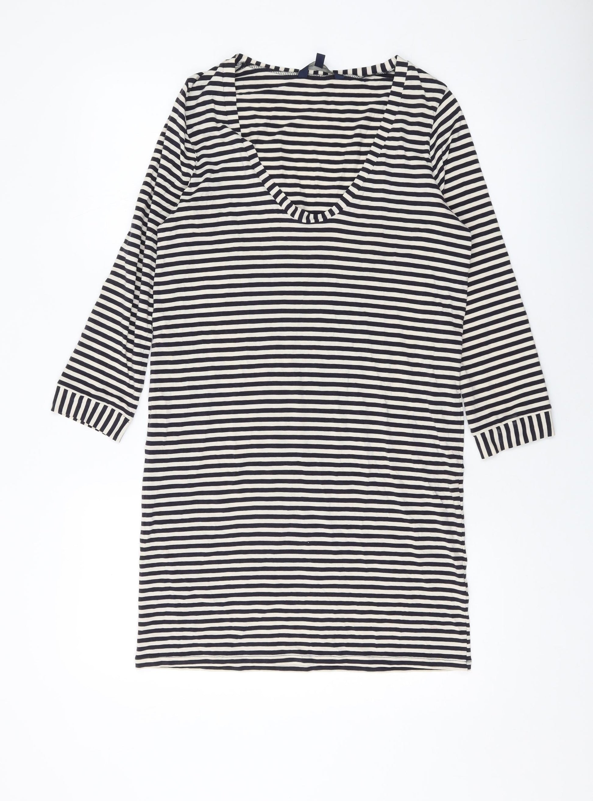 French Connection Womens Blue Striped Lyocell Bodycon Size 12 Scoop Neck Pullover