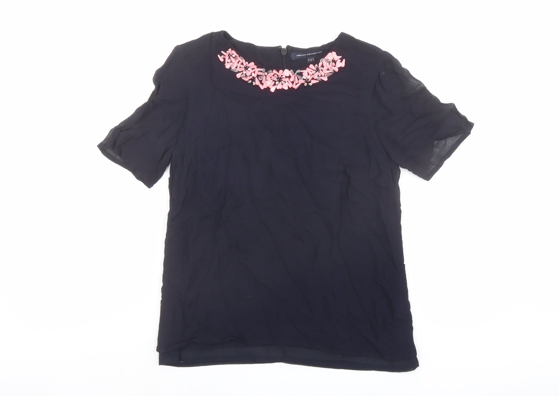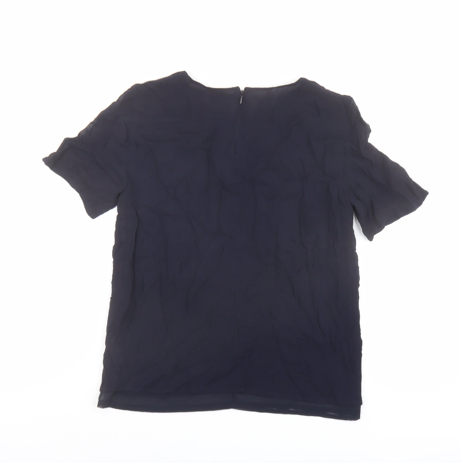 French Connection Womens Blue Viscose Basic Blouse Size 8 Boat Neck - Embellished Neckline