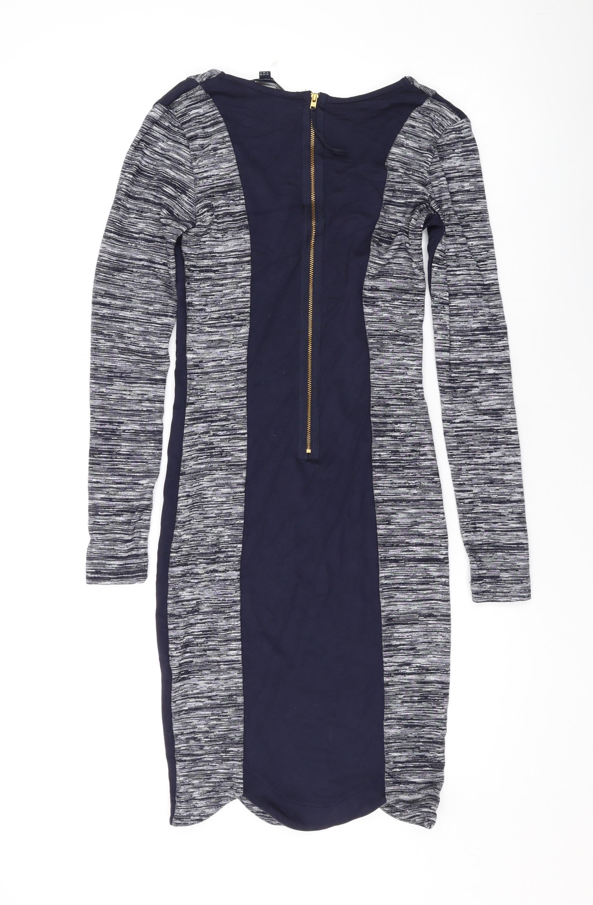 French Connection Womens Blue Viscose Bodycon Size 8 V-Neck Zip