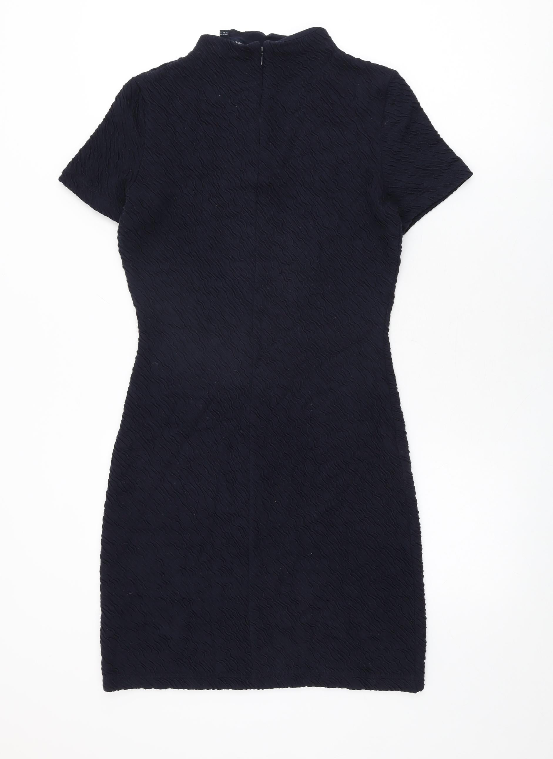 French Connection Womens Blue Viscose Shift Size 8 Round Neck Zip