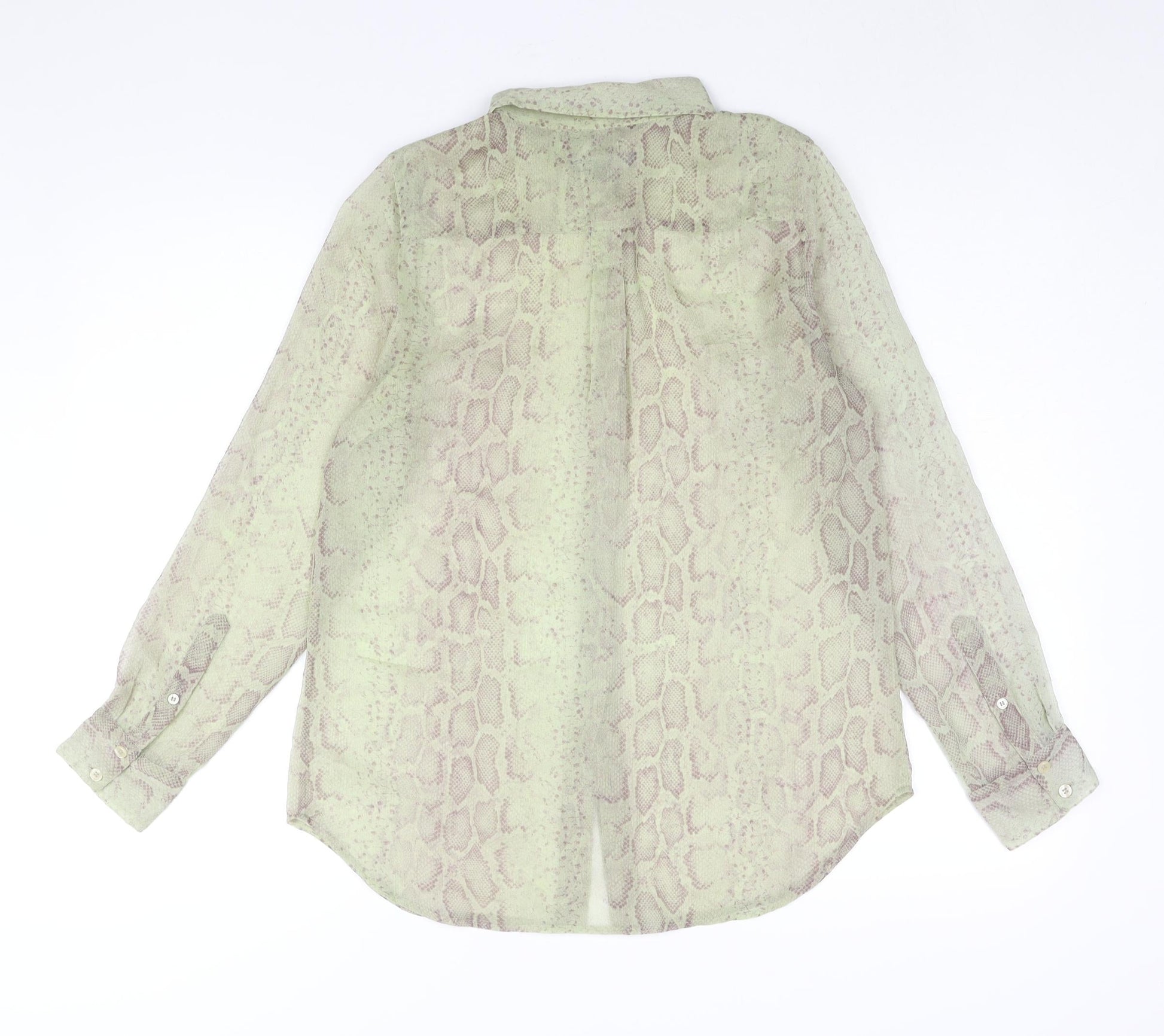 French Connection Womens Green Animal Print Polyester Basic Blouse Size 10 Collared - Snake Print Semi Sheer