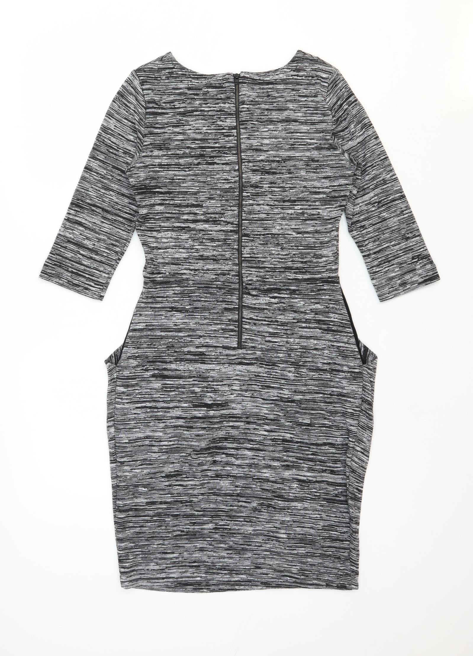 French Connection Womens Grey Polyester Pencil Dress Size 10 Boat Neck Zip