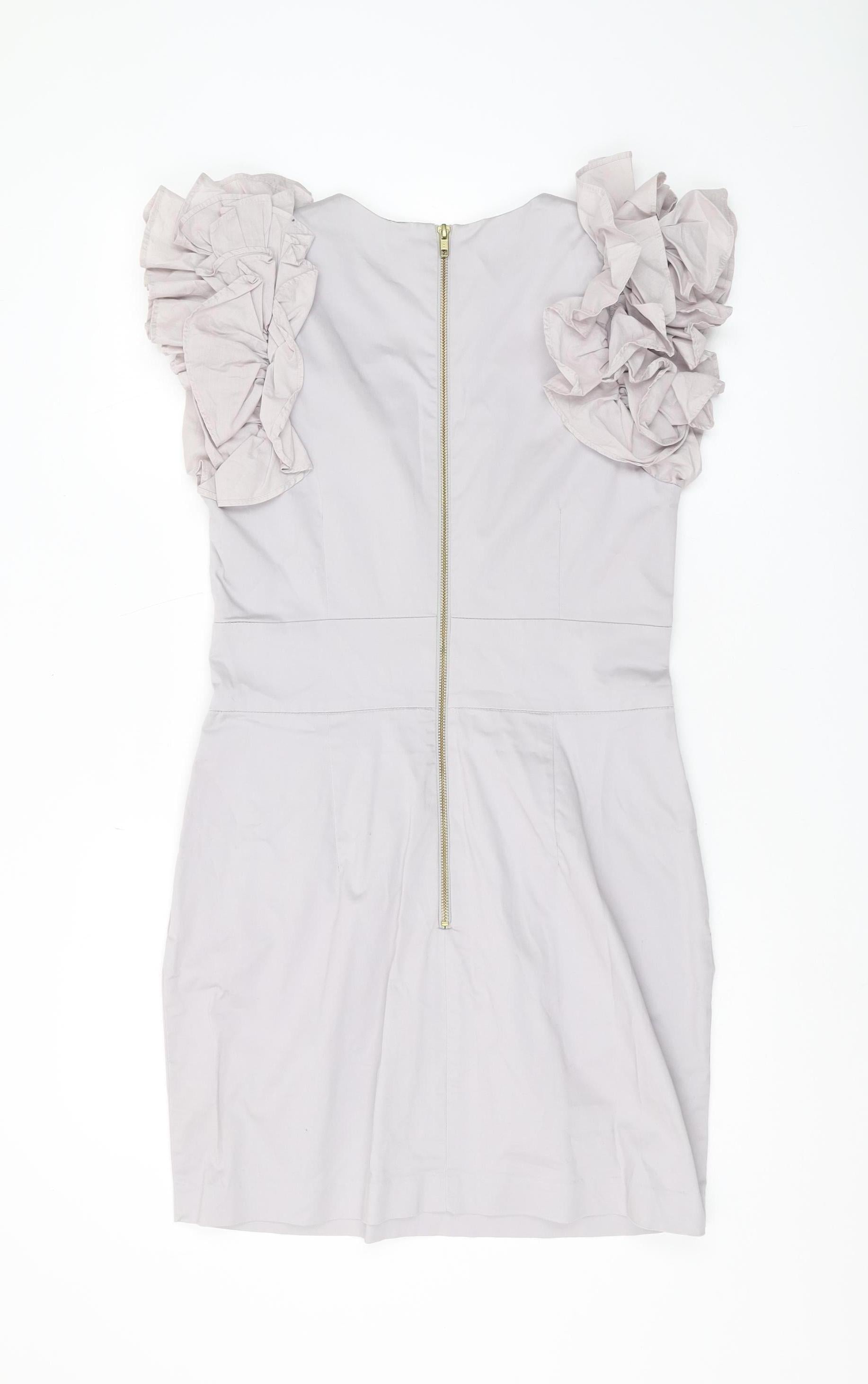 French Connection Women's Grey Ruffle Shift Dress Size 14