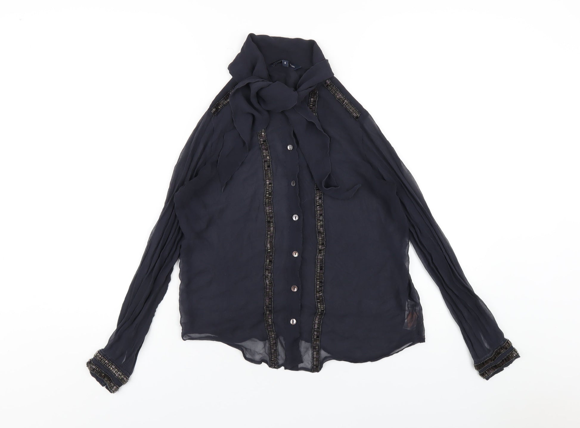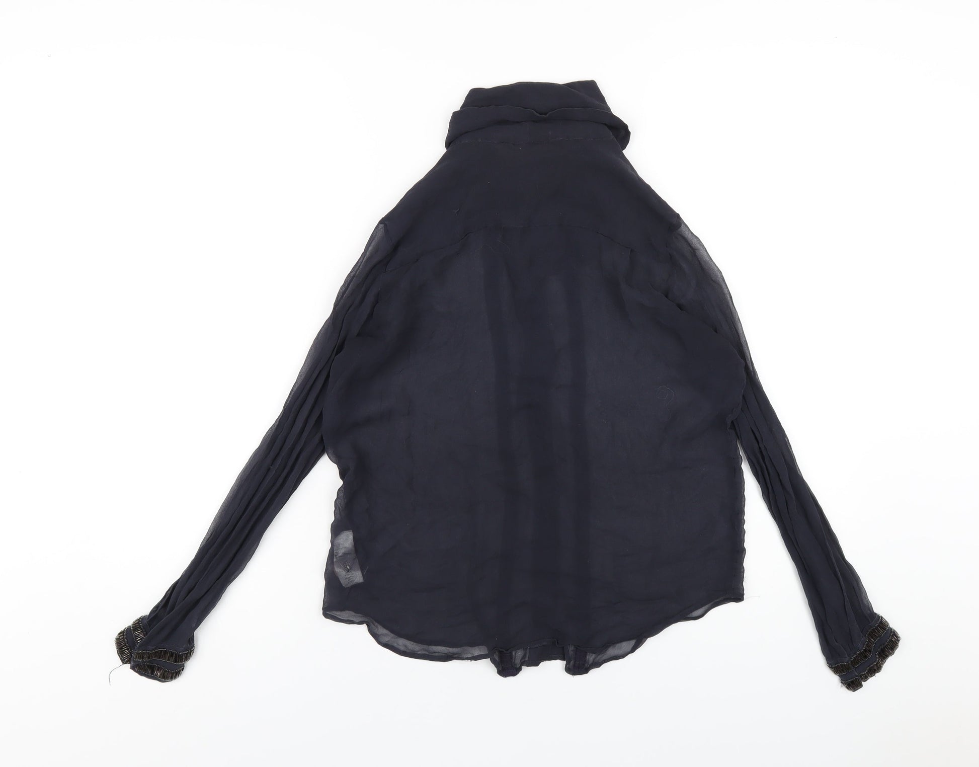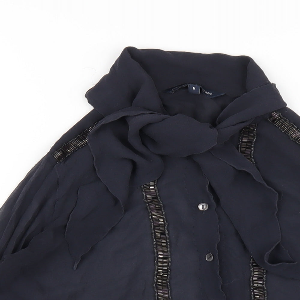 French Connection Womens Grey Silk Basic Button-Up Size 6 Roll Neck - Beaded