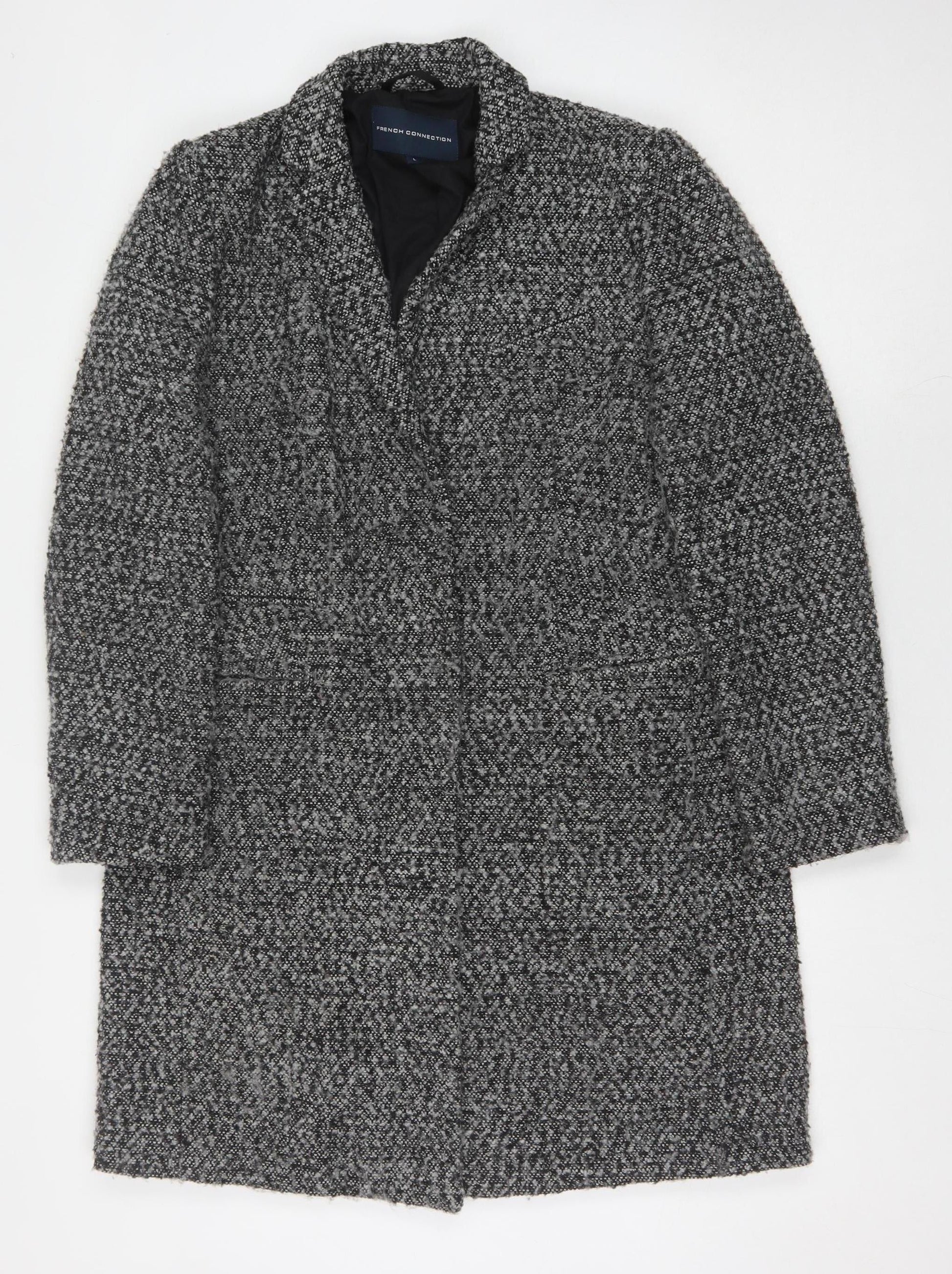 French Connection Women's Grey Tweed Long Overcoat, L