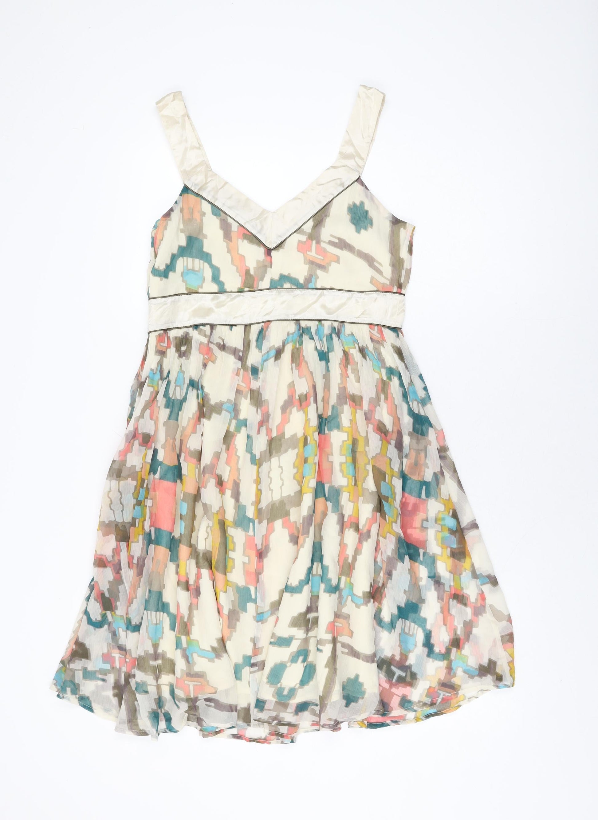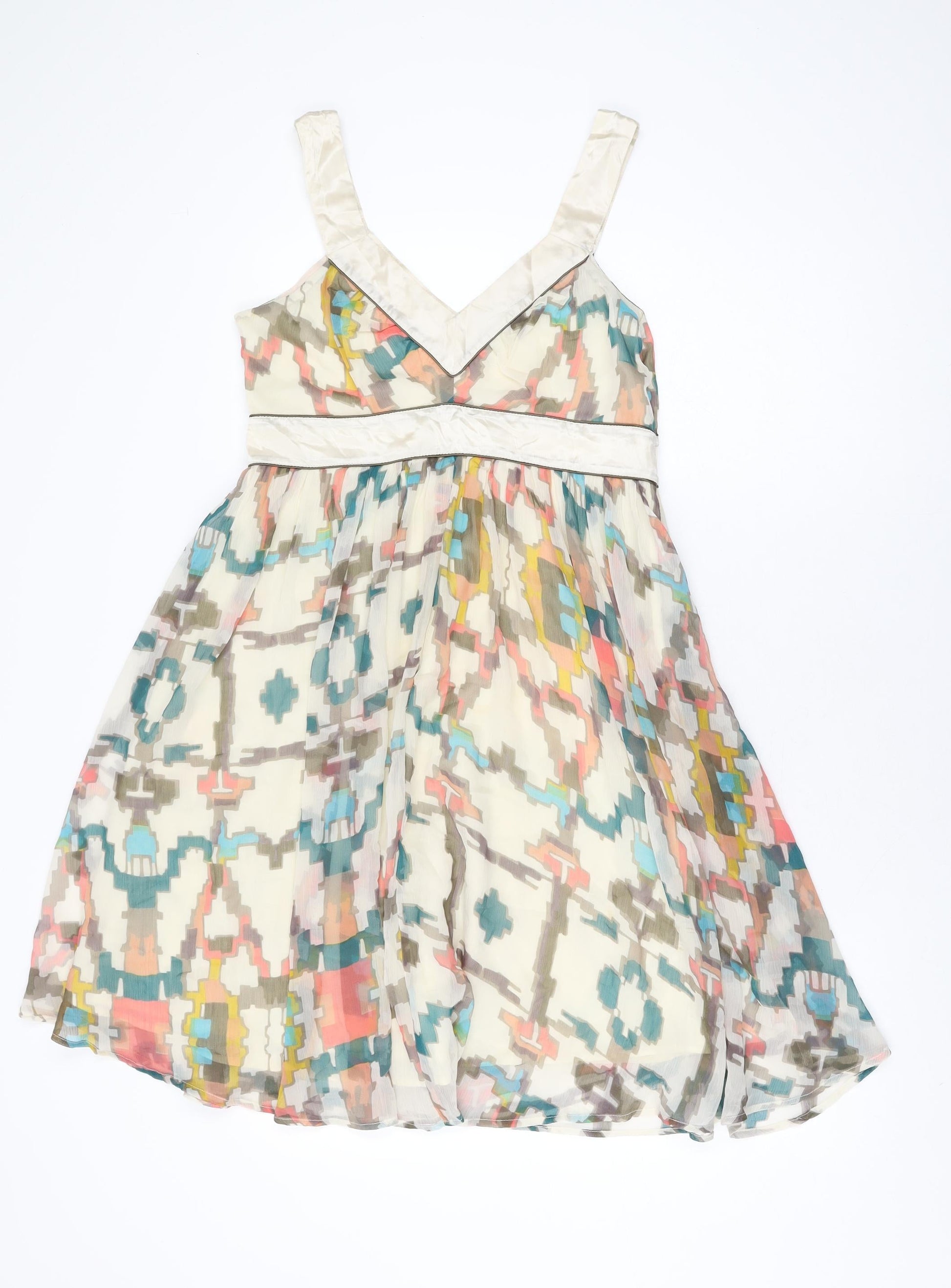 French Connection Womens Ivory Geometric Polyester A-Line Size 12 V-Neck Zip