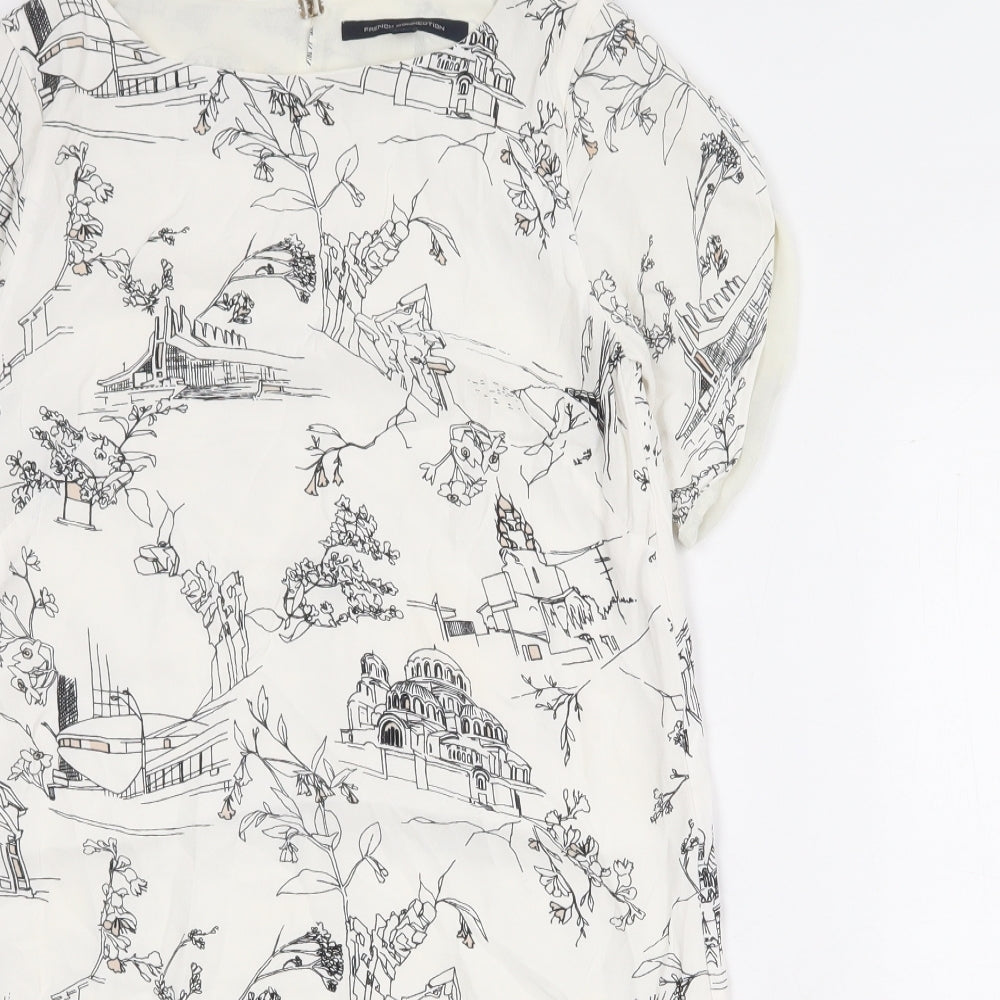 French Connection Womens Ivory Geometric Viscose A-Line Size 6 Round Neck Button - illustration print
