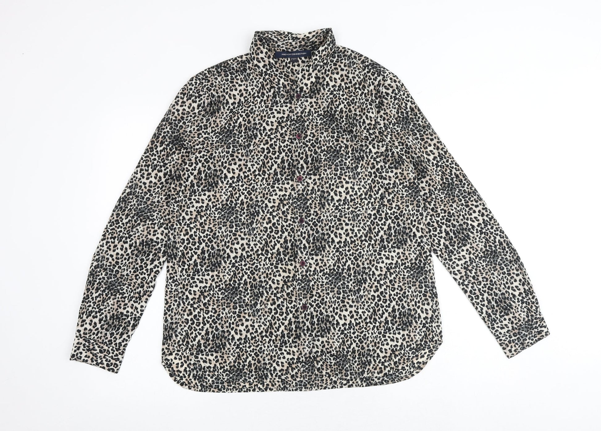 French Connection Womens Multicoloured Animal Print Polyester Basic Button-Up Size 8 Collared - Leopard Print